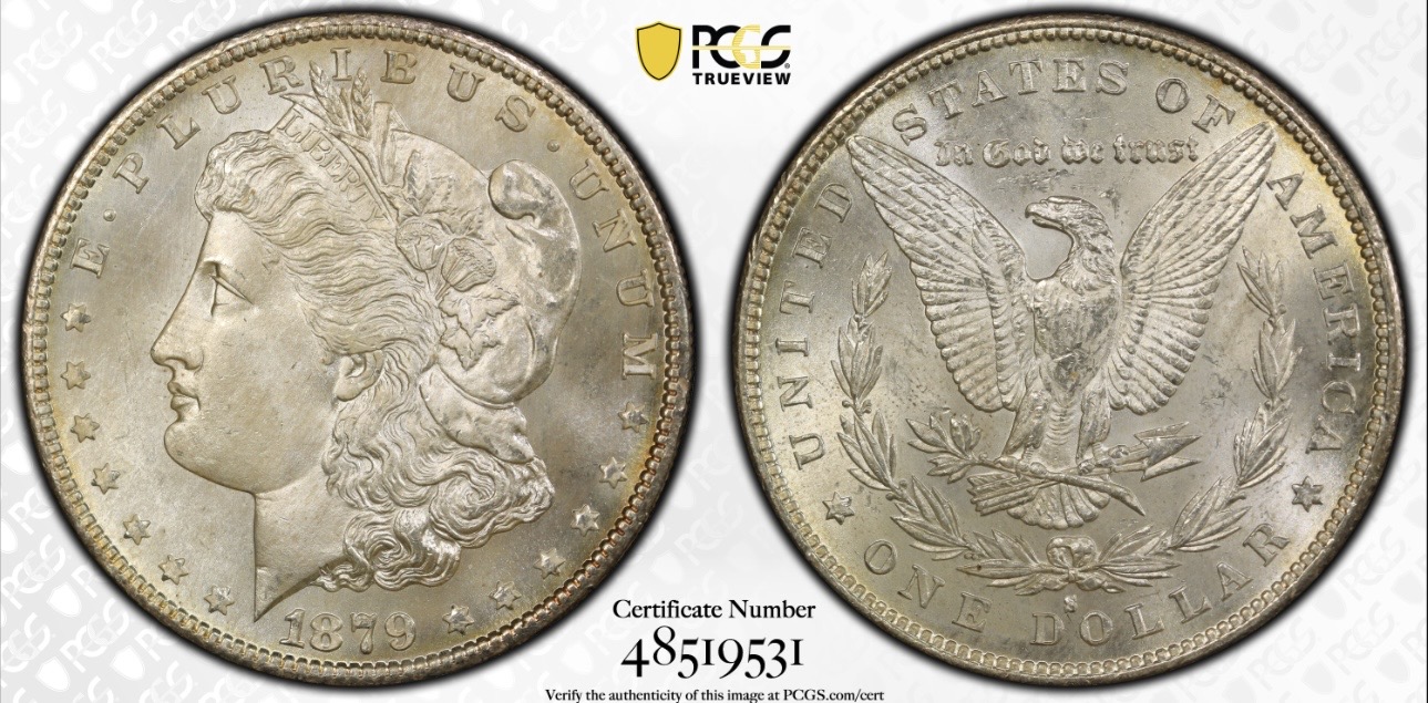 1879-S Morgan Silver Dollar Flashy Off White Luster Superb Gem PCGS MS65+