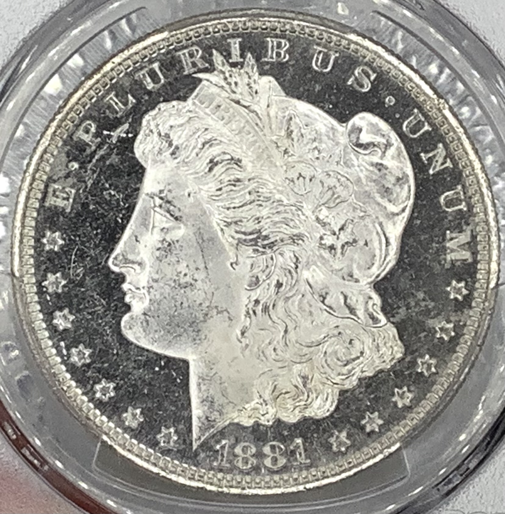 Product: 1881-S Morgan Silver Dollar PCGS MS64 PL Older Blue Holder B&W Contrast Superb!