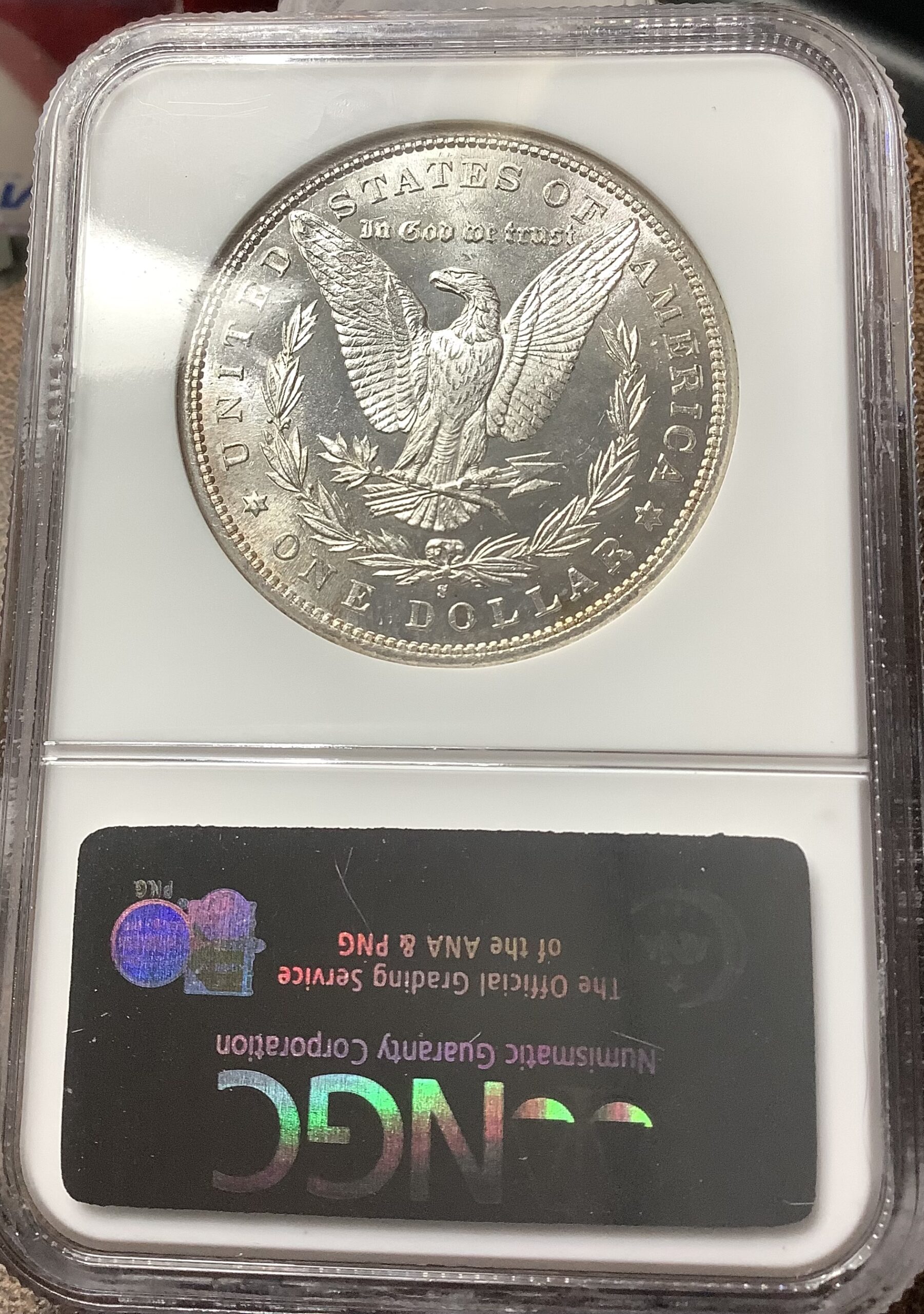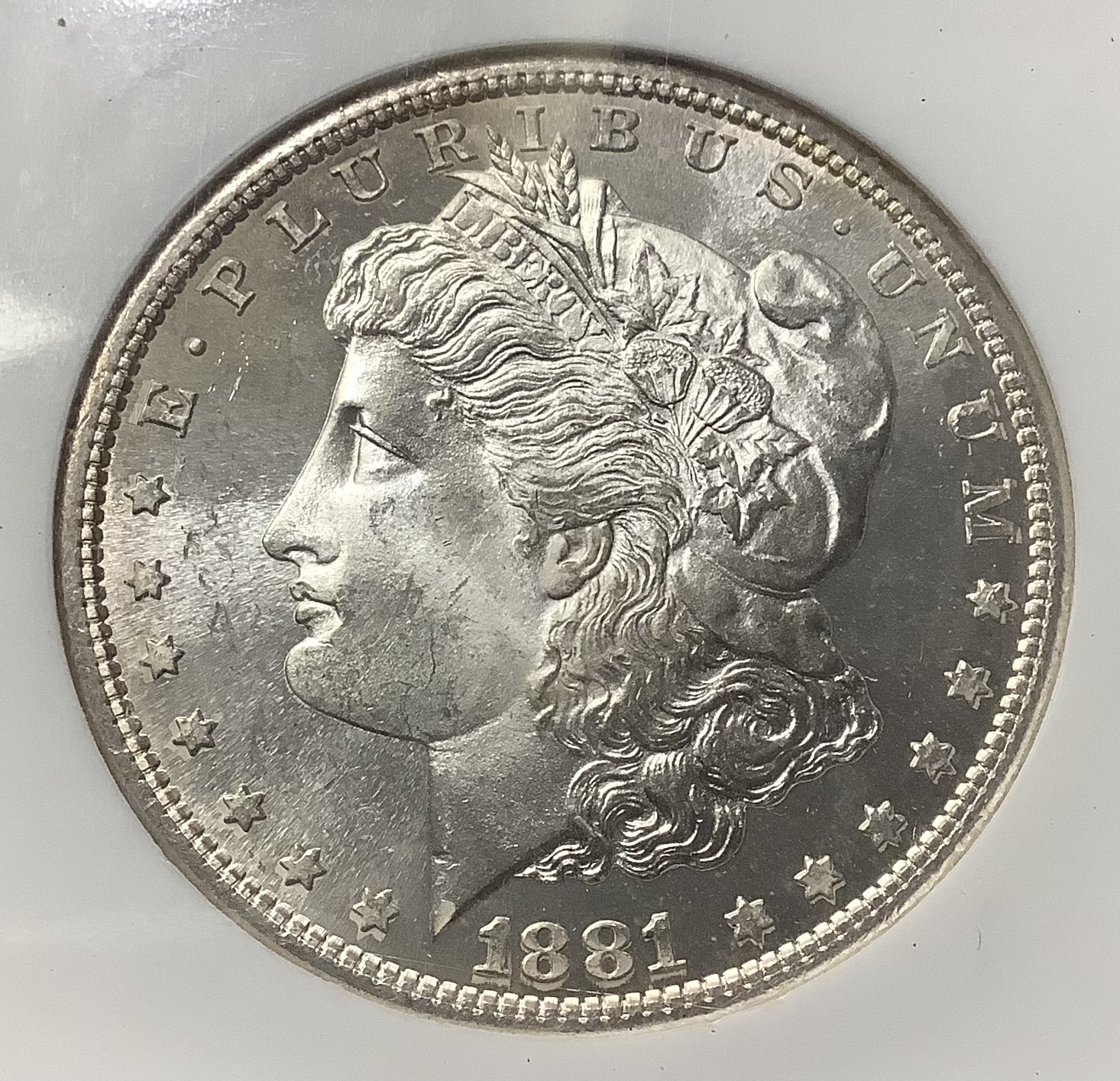 1881-S Morgan Silver Dollar – Snow White Gem housed in an older generation NGC slab graded NGC MS65.