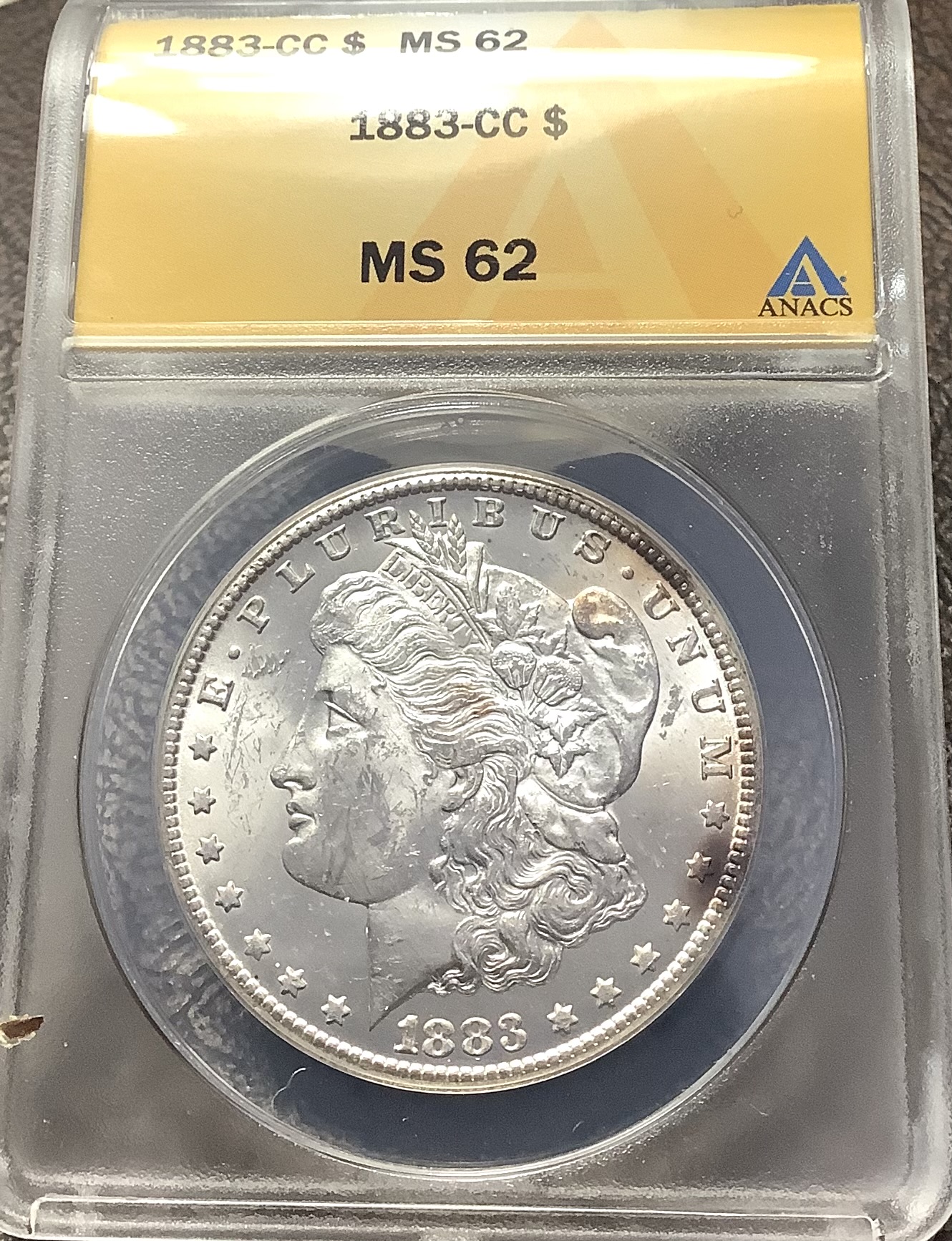 / 1883-CC Morgan Silver Dollar 90% Silver ANACS MS62 Frosty Luster