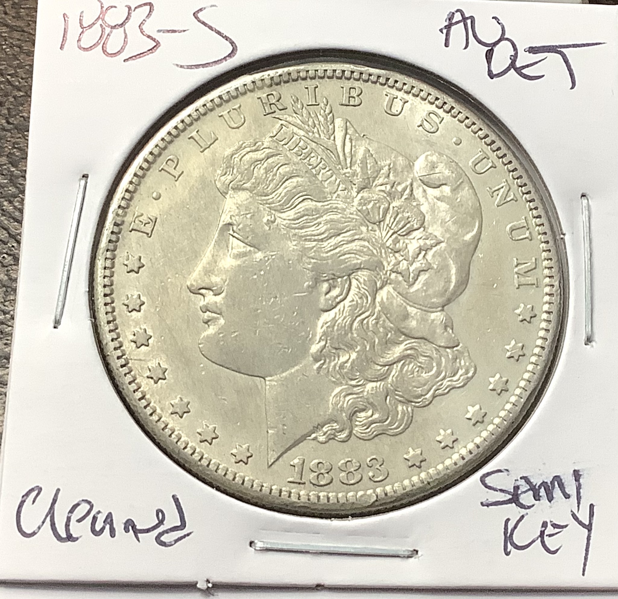 1883-S Morgan Silver Dollar AU Details Cleaned Tough KEY DATE