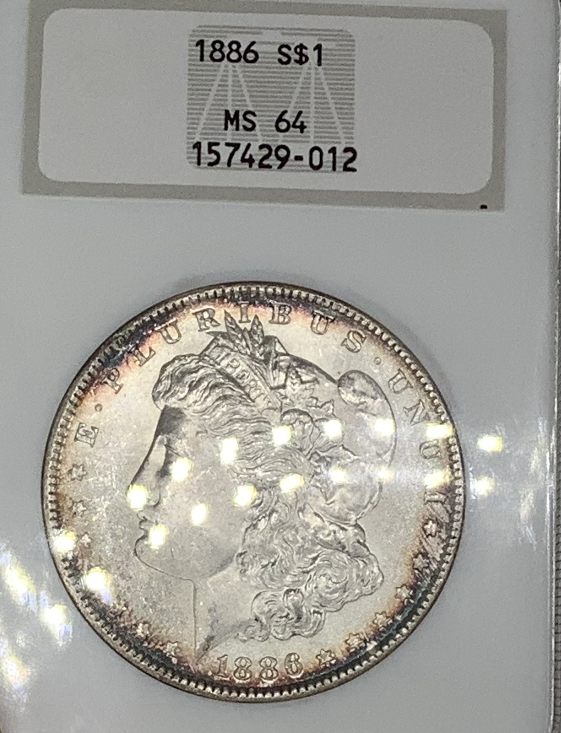 1886 Morgan Silver Dollar NGC MS64 Toned Superb NGC No Bar Code Fatty VAM 8? PQ