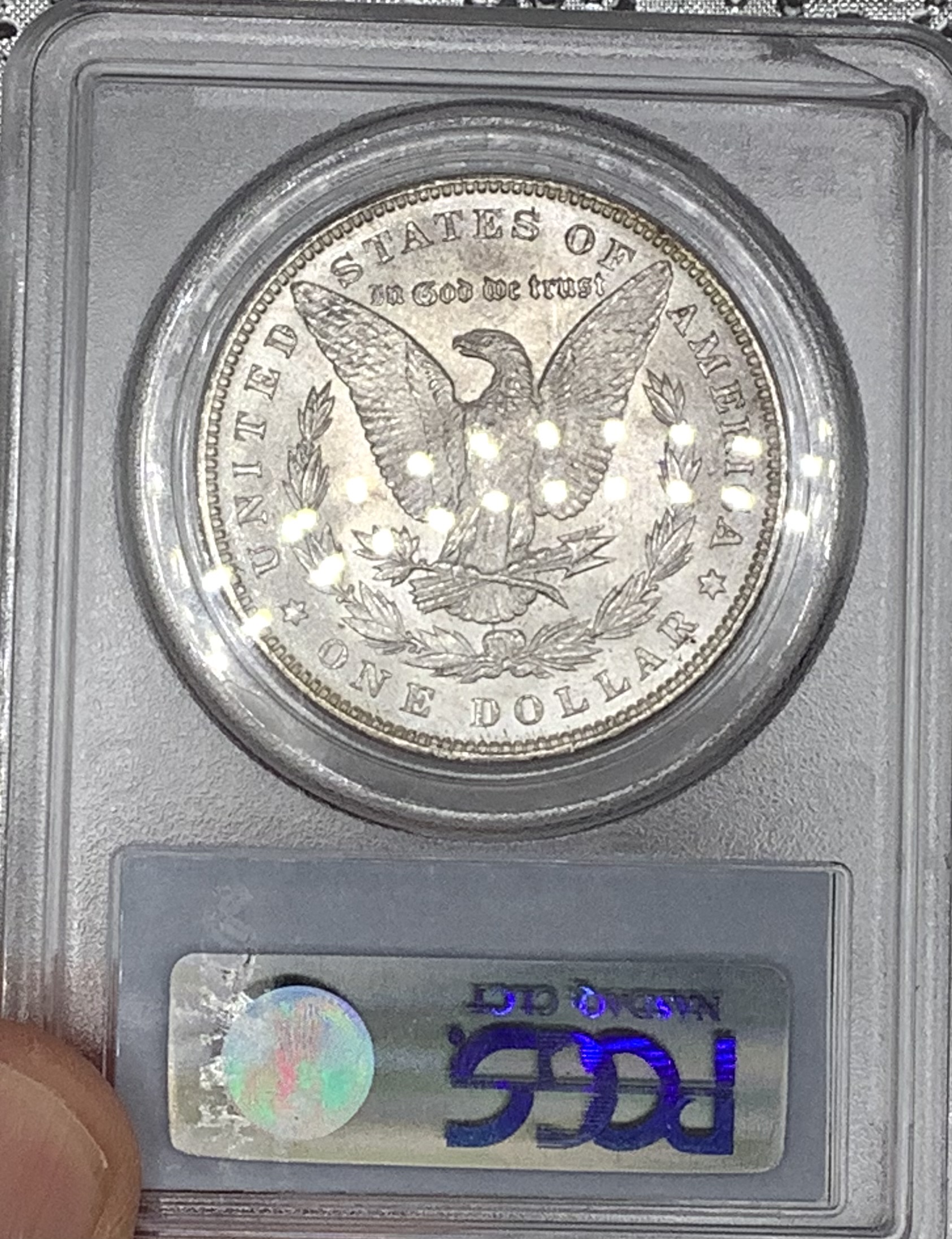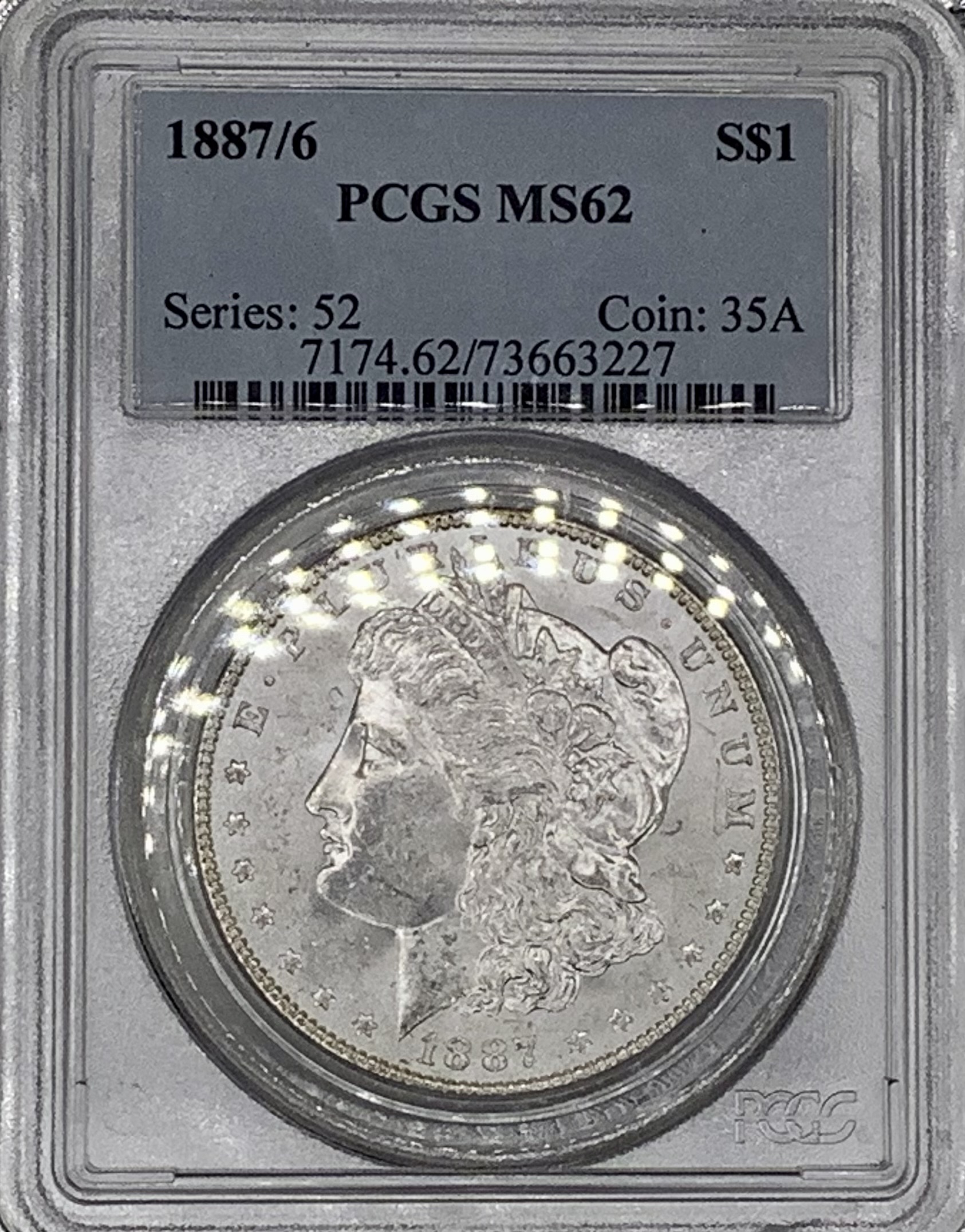 1887/6 Morgan Silver Dollar – Very Scarce and Popular Overdate Variety housed in an older Blue PCGS Holder graded PCGS MS62