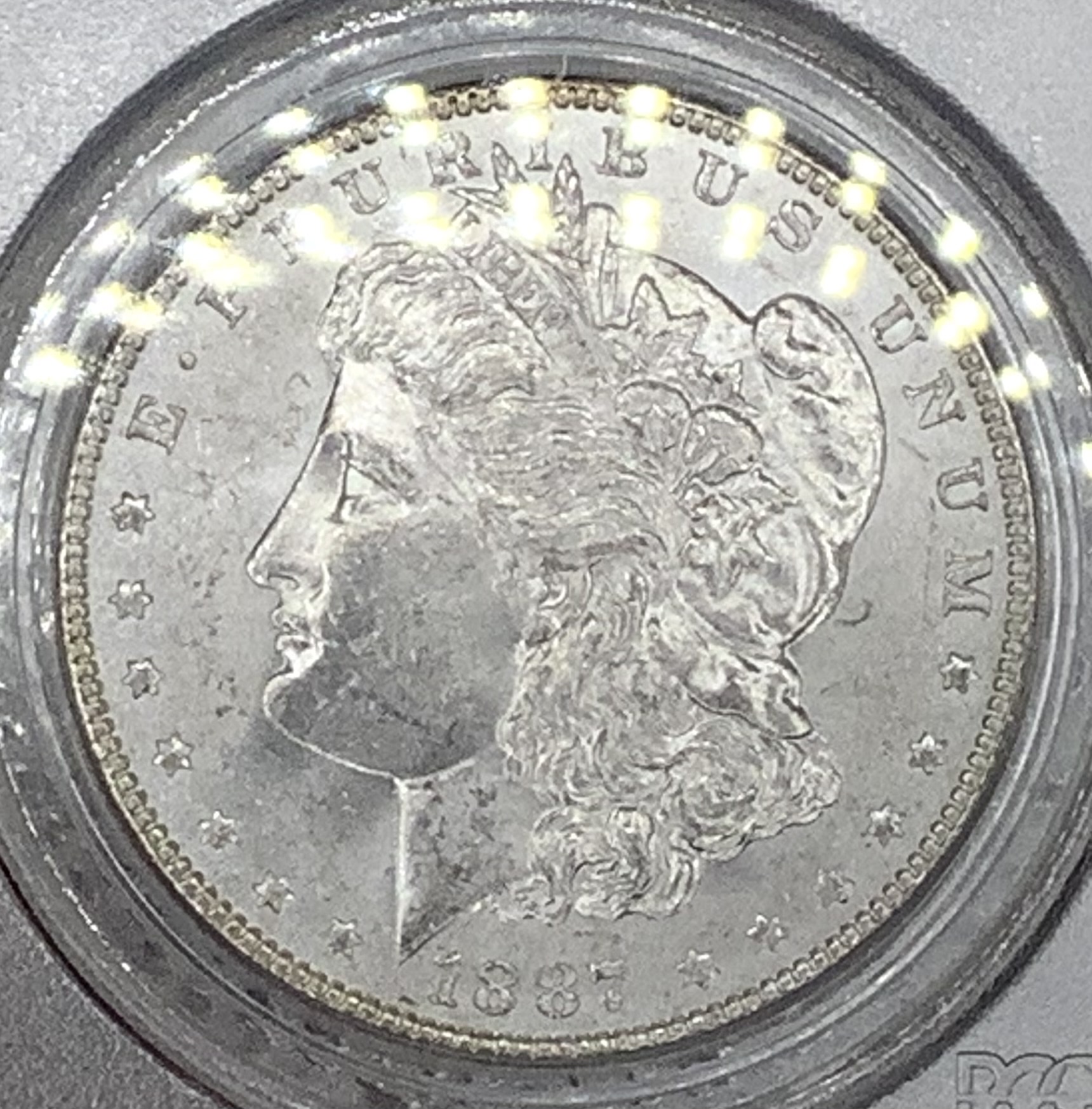 1887/6 Morgan Silver Dollar Rare, Popular Overdate PCGS MS62 Older Blue Holder