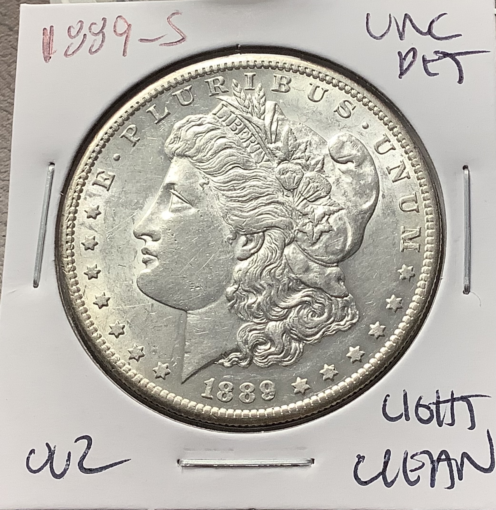 1889-S Morgan Silver Dollar Uncirculated Detail Lightly Cleaned Key Date 02