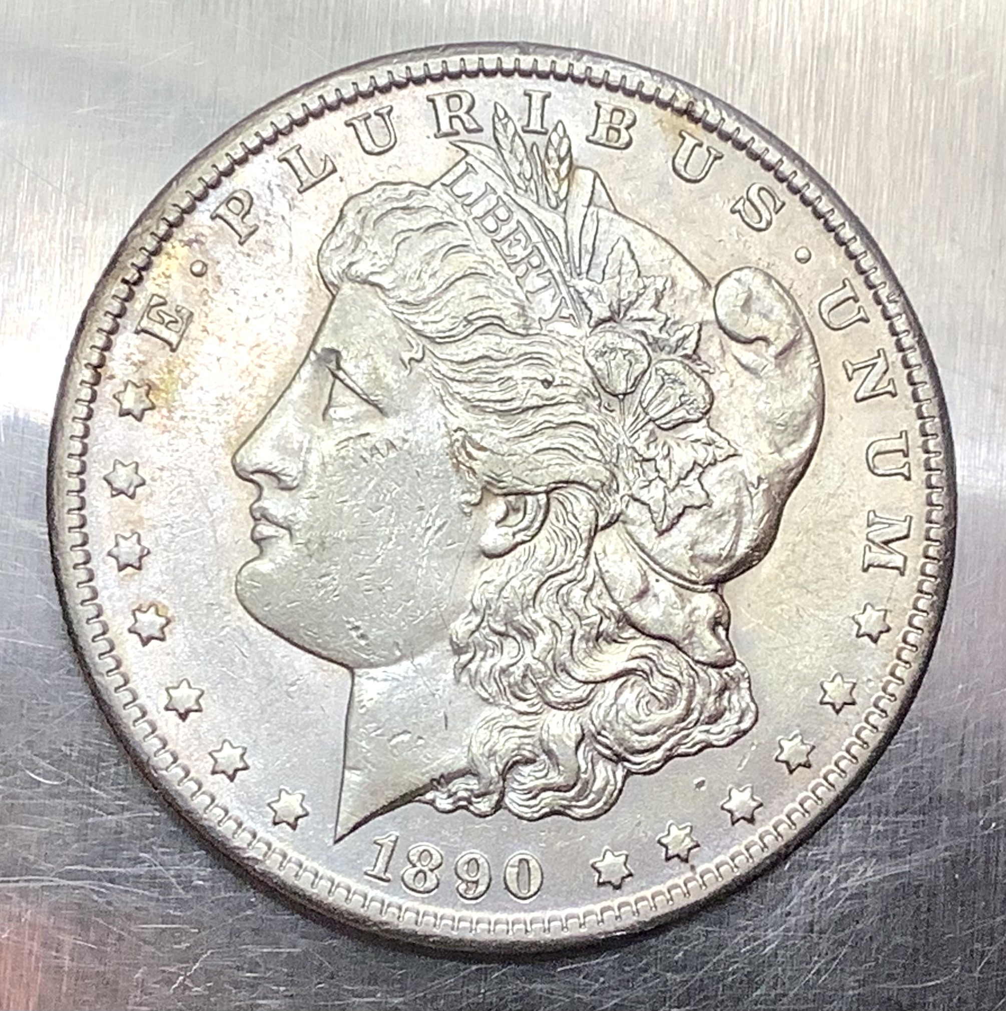 1890-CC Morgan Silver Dollar 90% Silver AU+ Detail Lightly Cleaned Tough