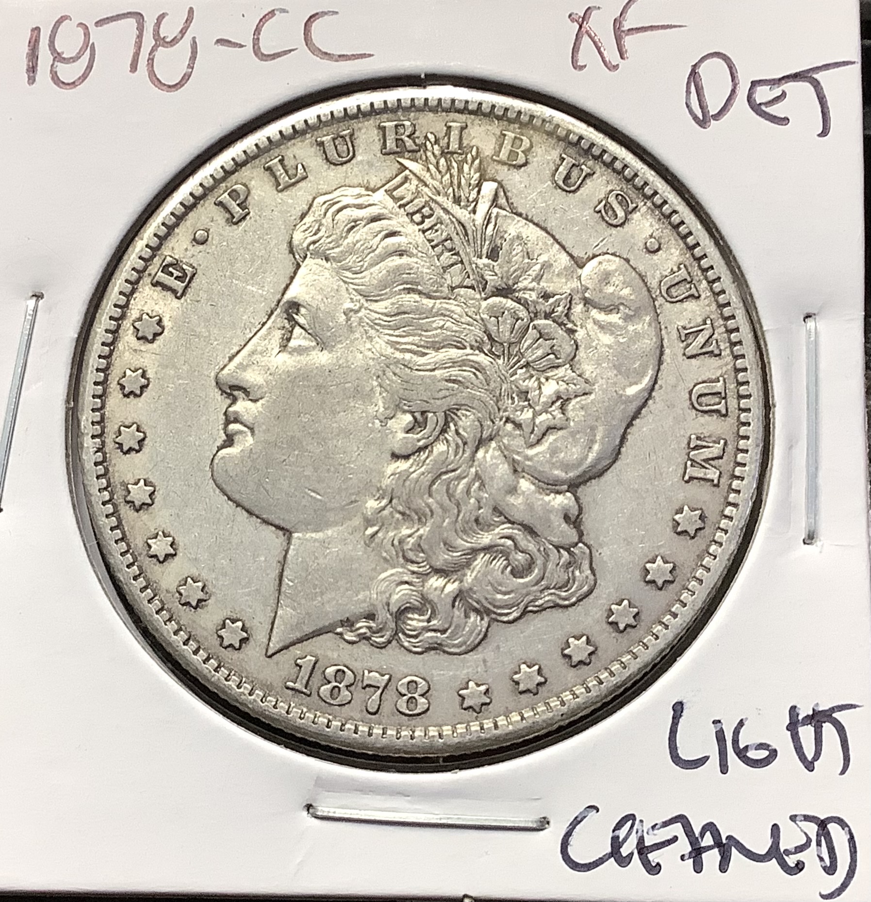1890-CC Morgan Silver Dollar – – AU+ Details. Coin has been lightly cleaned. Tough Date.