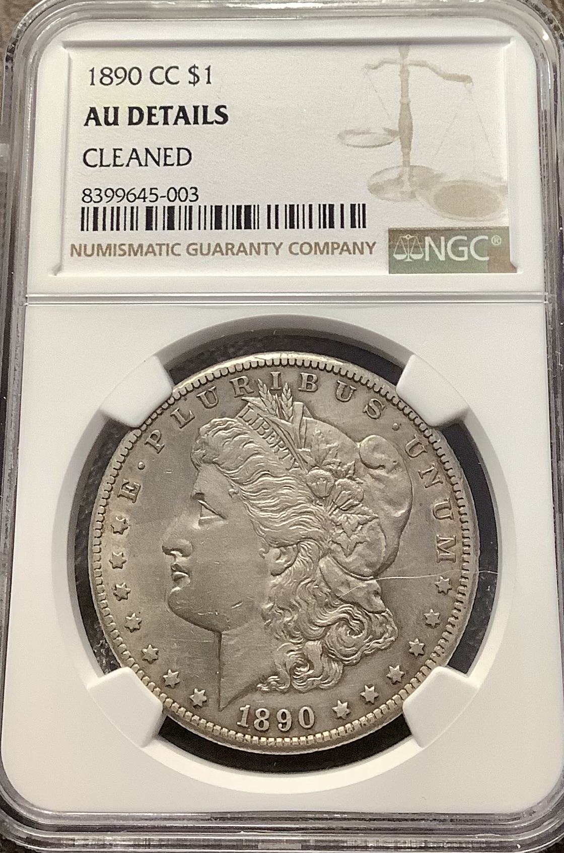 1890-CC Morgan Silver Dollar 90% Silver NGC AU Detail Cleaned Tough CC in AU quantity