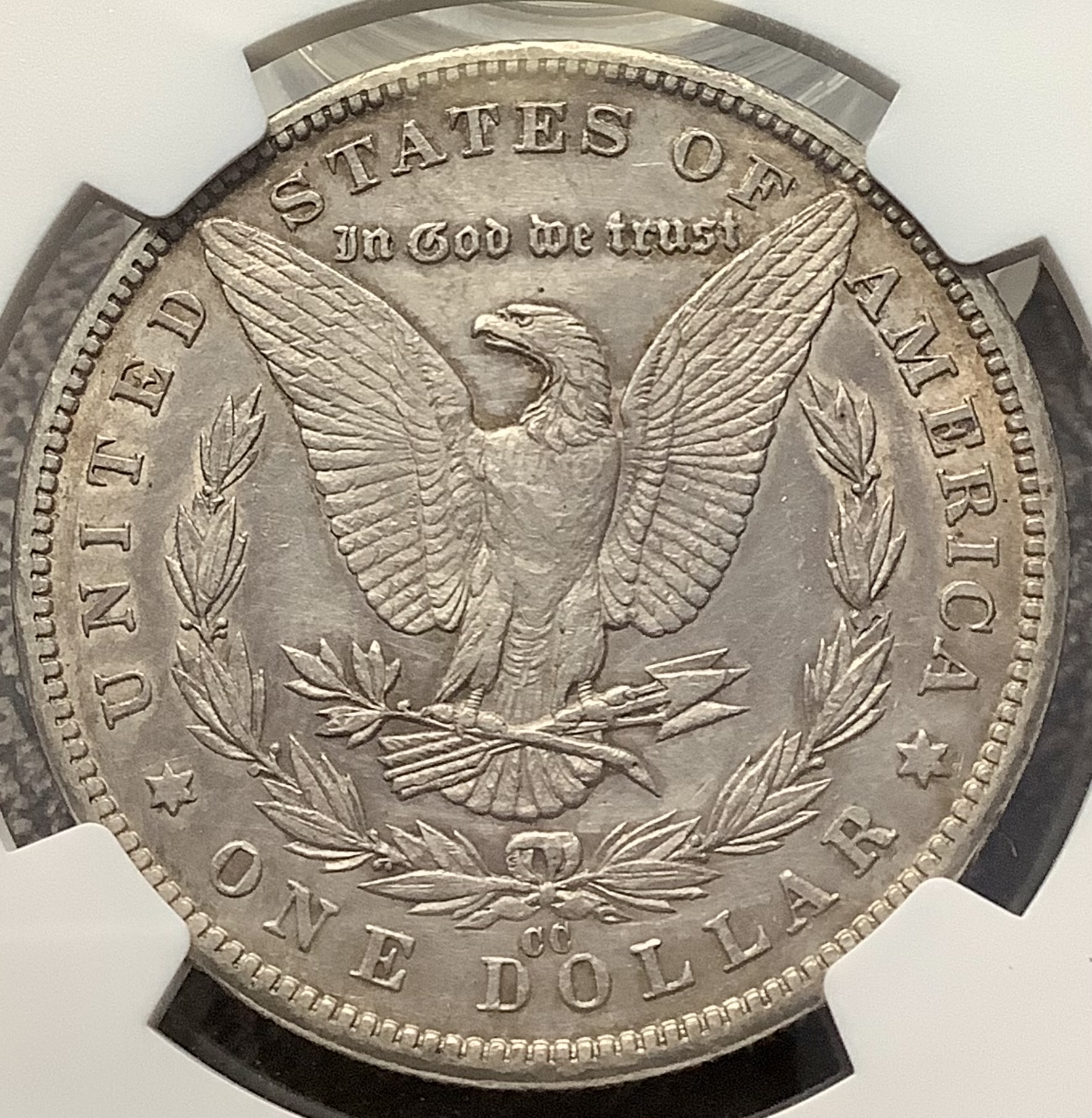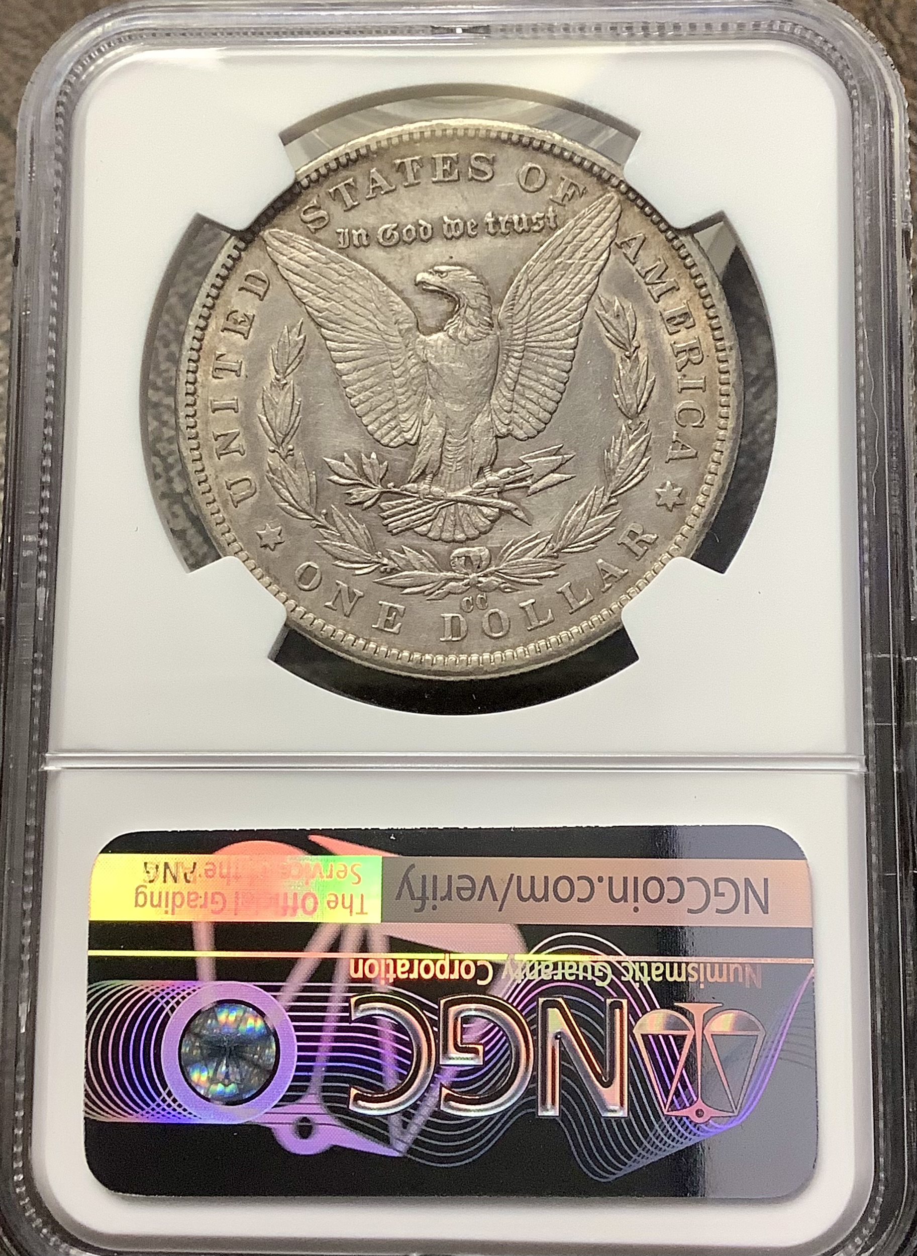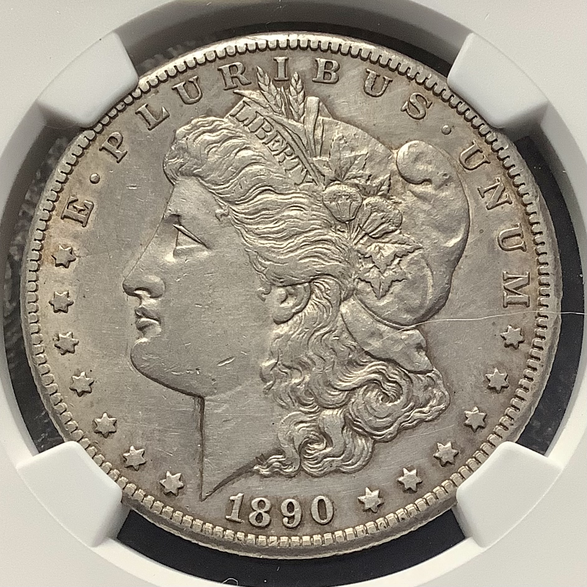 Product: 1890-CC Morgan Silver Dollar 90% Silver NGC AU Detail Cleaned Tough CC in AU