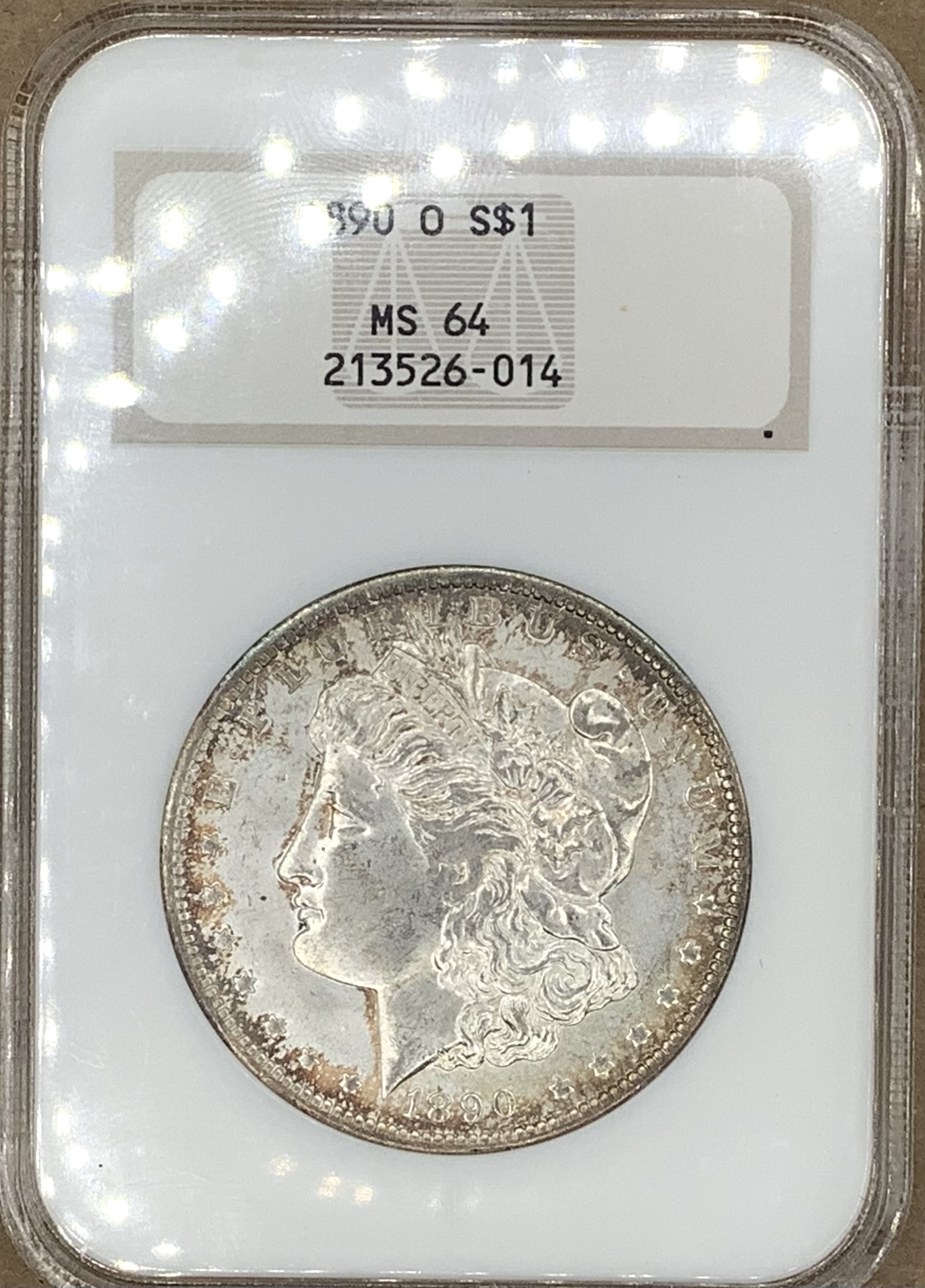 1890-O Morgan Silver Dollar NGC MS64 Antique Toned Superb NGC No Bar Code Fatty
