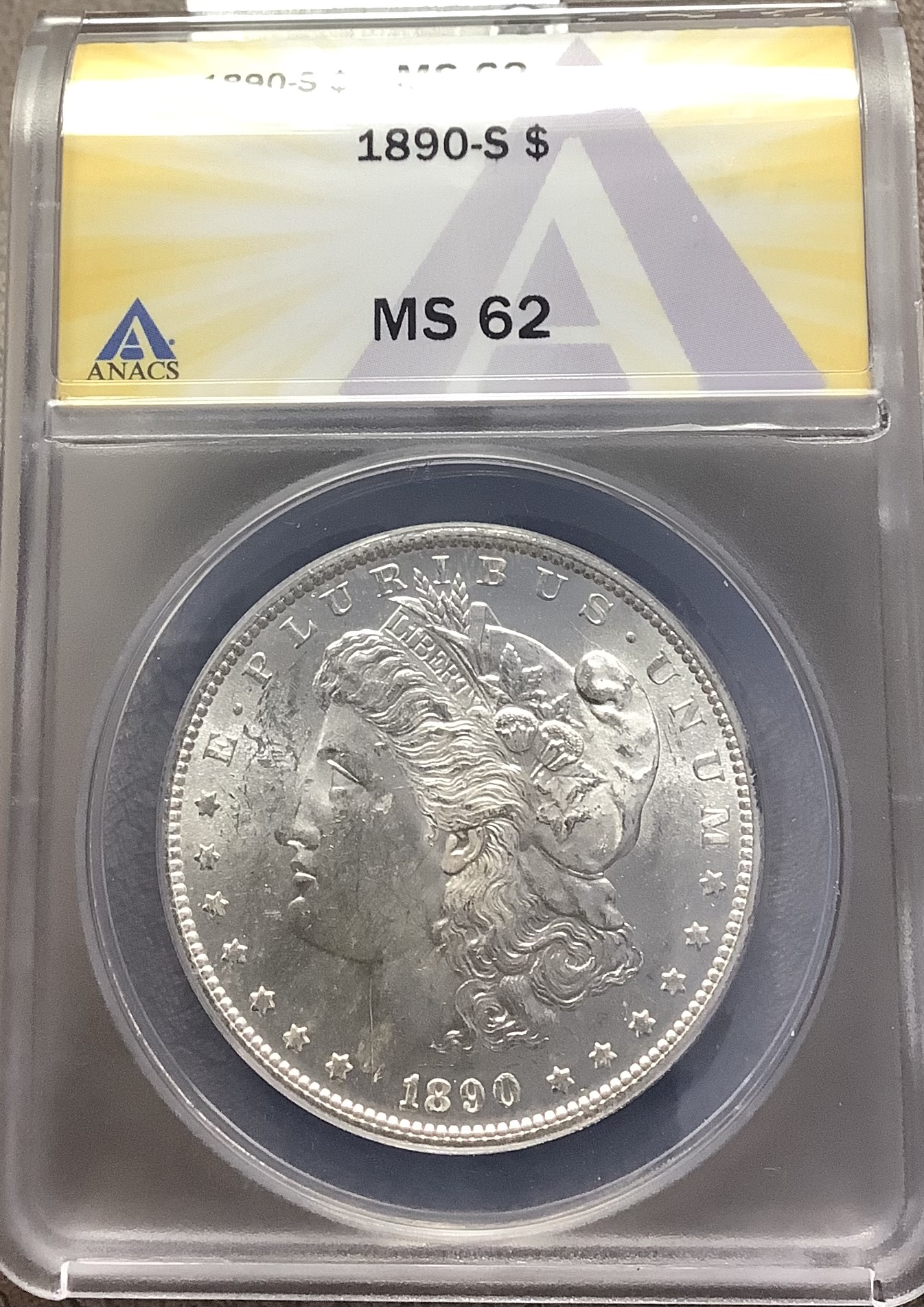 Product: 1890-S Morgan Silver Dollar ANACS MS62 Lustrous Silver White Coin Better Date