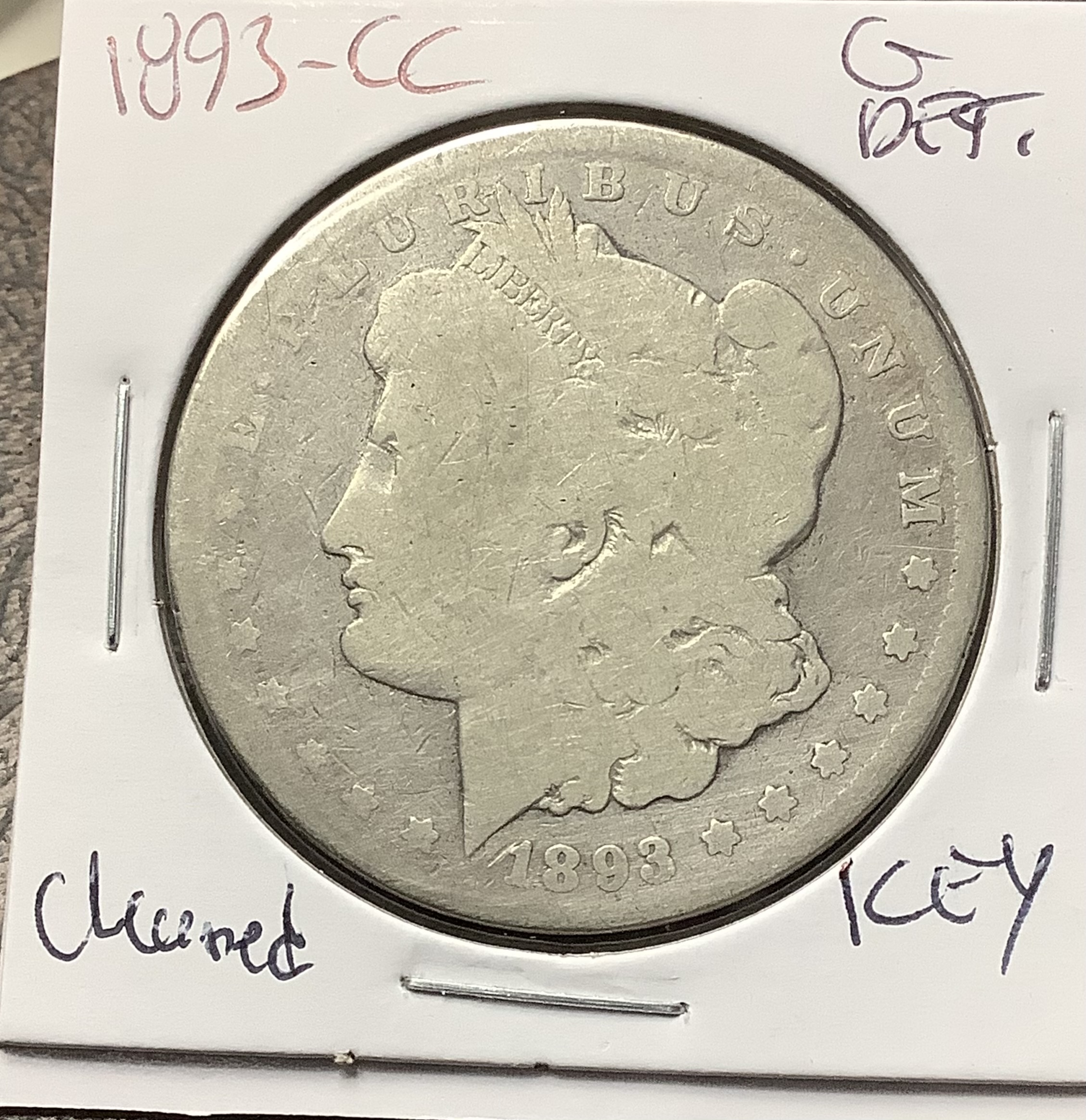 1893-CC Morgan Silver Dollar Key Date G Detail Cleaned – Sigma Verified