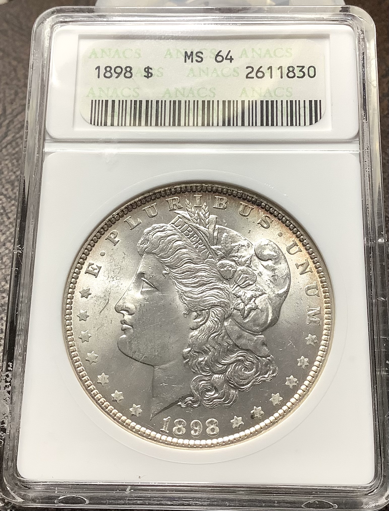 1898 Morgan Silver Dollar ANACS MS64 Frosty Near Gem Small White Soapbox – Better Date
