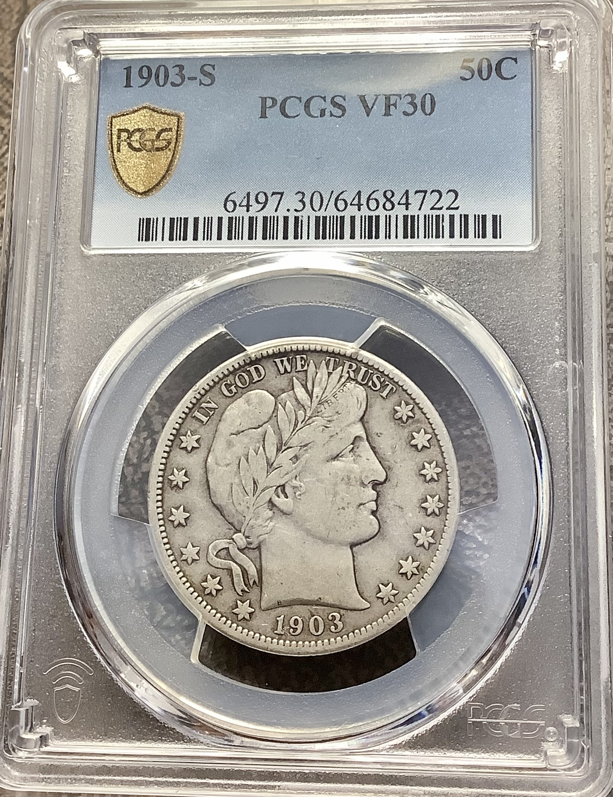 Product: 1903-S 90% Silver Barber Half Dollar PCGS VF30 Sweet Original Tough Semi-Key