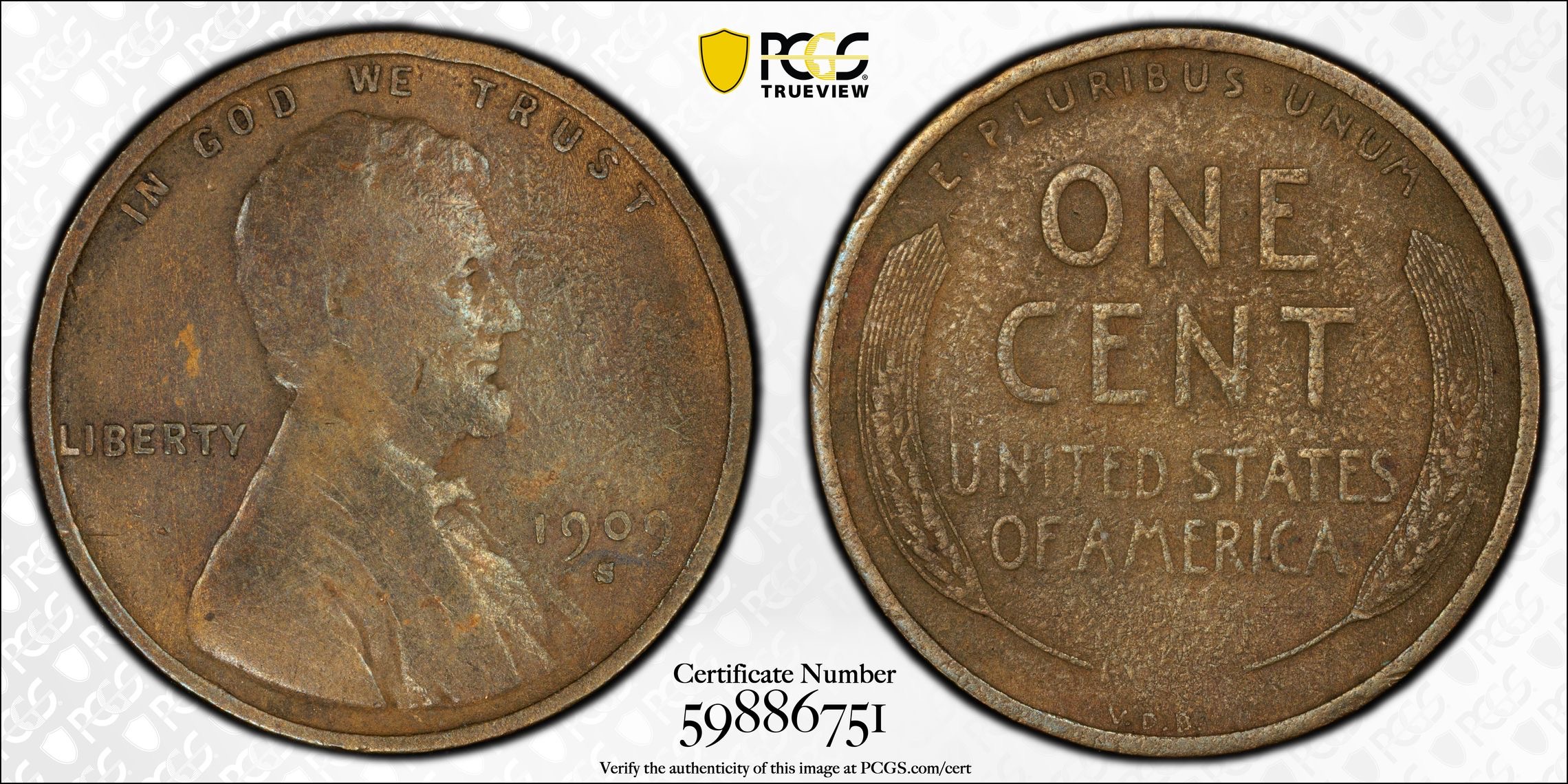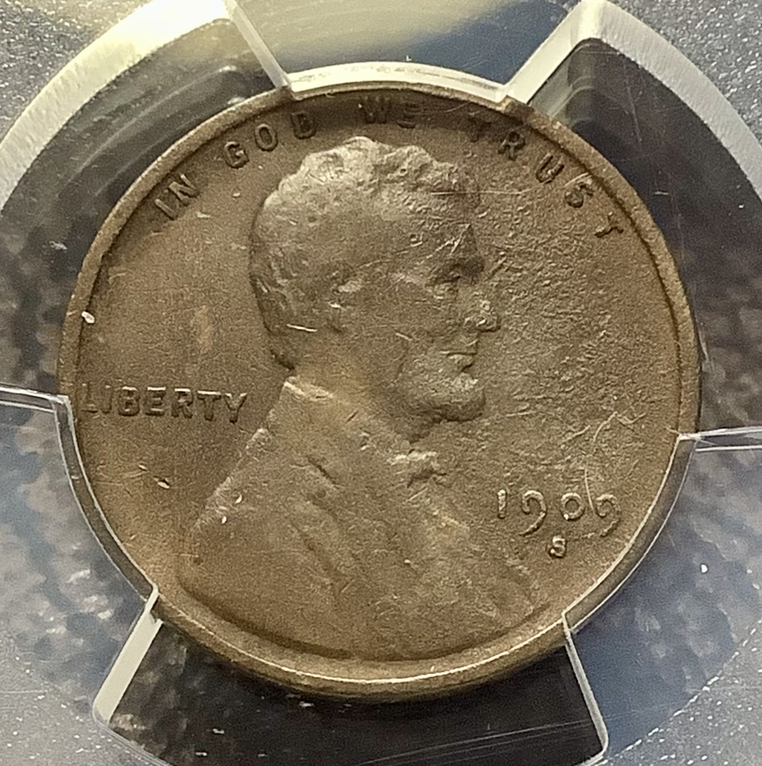 1909-S VDB Lincoln Wheat Cent PCGS F Detail – Environmental Damage – KEY DATE
