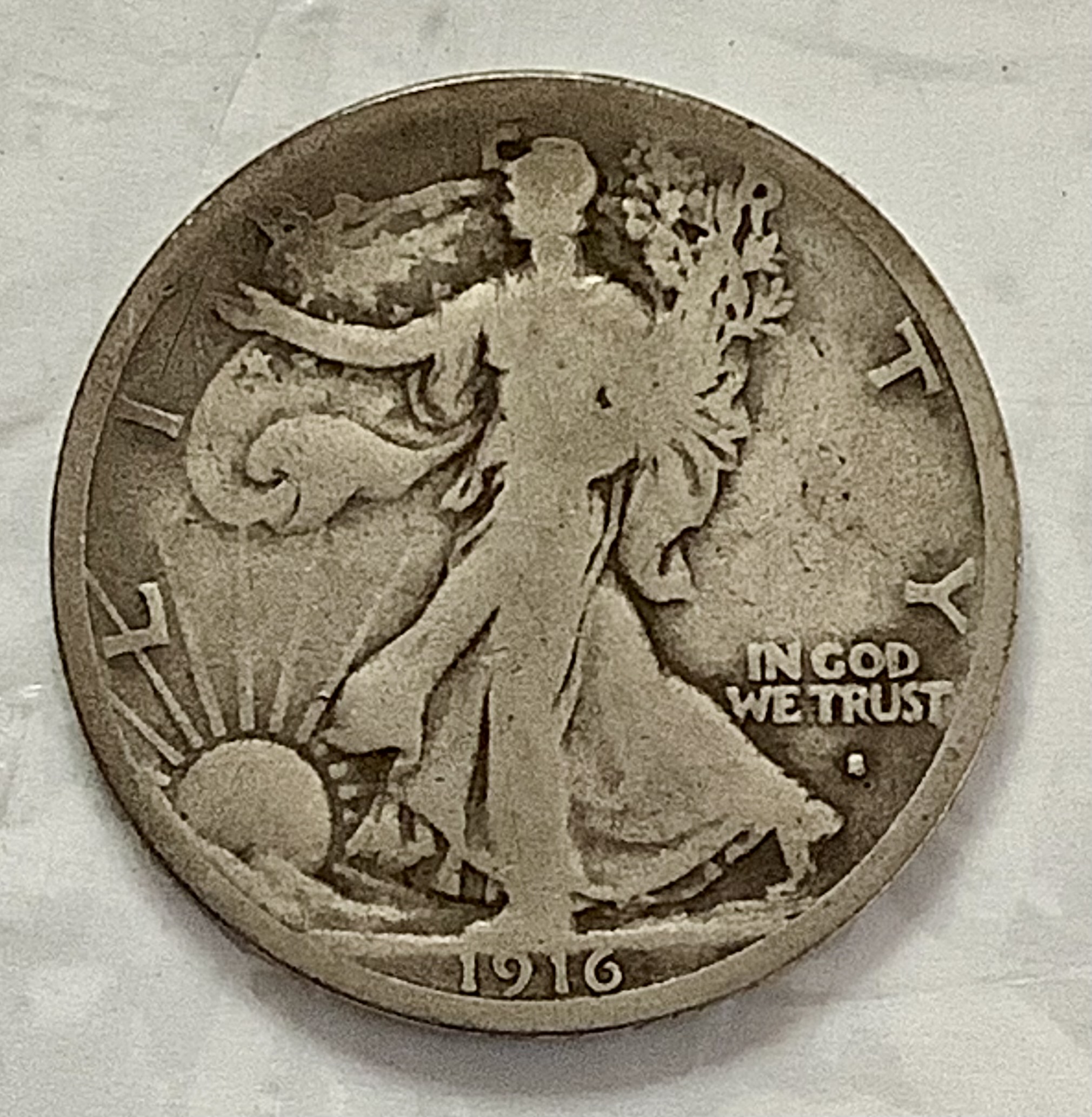 1916-S 90% Silver Walking Liberty Half Dollar G+ Original Surfaces Full Rims KEY DATE