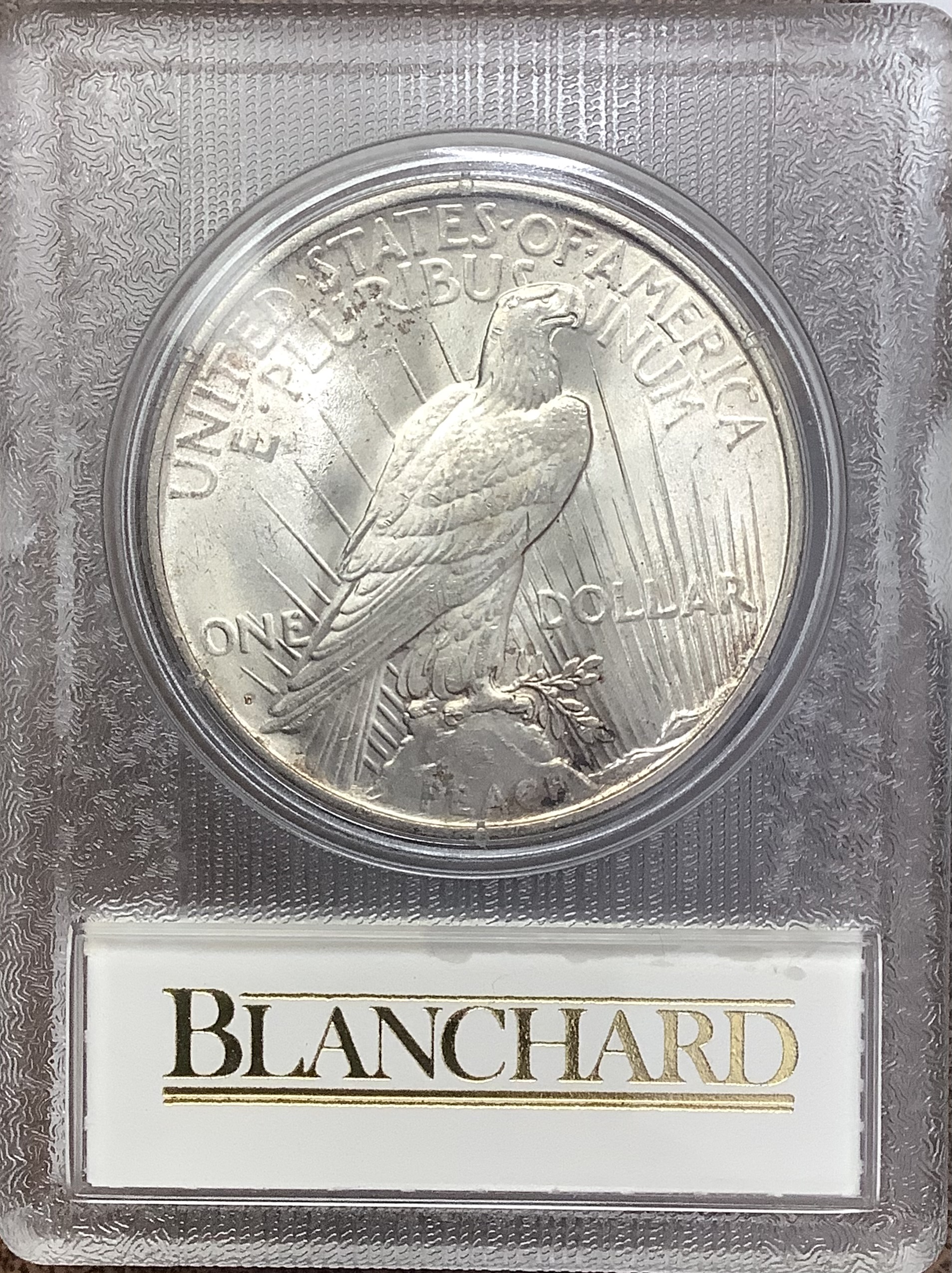 At the time Blanchard Gold and Silver were slabbing coins, the hobby basically used 3 Uncirculated grades ending in zero, three and five. Once in a blue moon you might see an uncirculated coin with a grade ending in a 7, representing ultra-superb gem, but these were unicorns seen far and few between. The opinion stamped on the label here would lead one to clunclude it was better than a “zero” but not quite a “three” which I would agree with. In my opinion, the smart money would be on “two” if it were to be submitted based on today’s strict grading standards