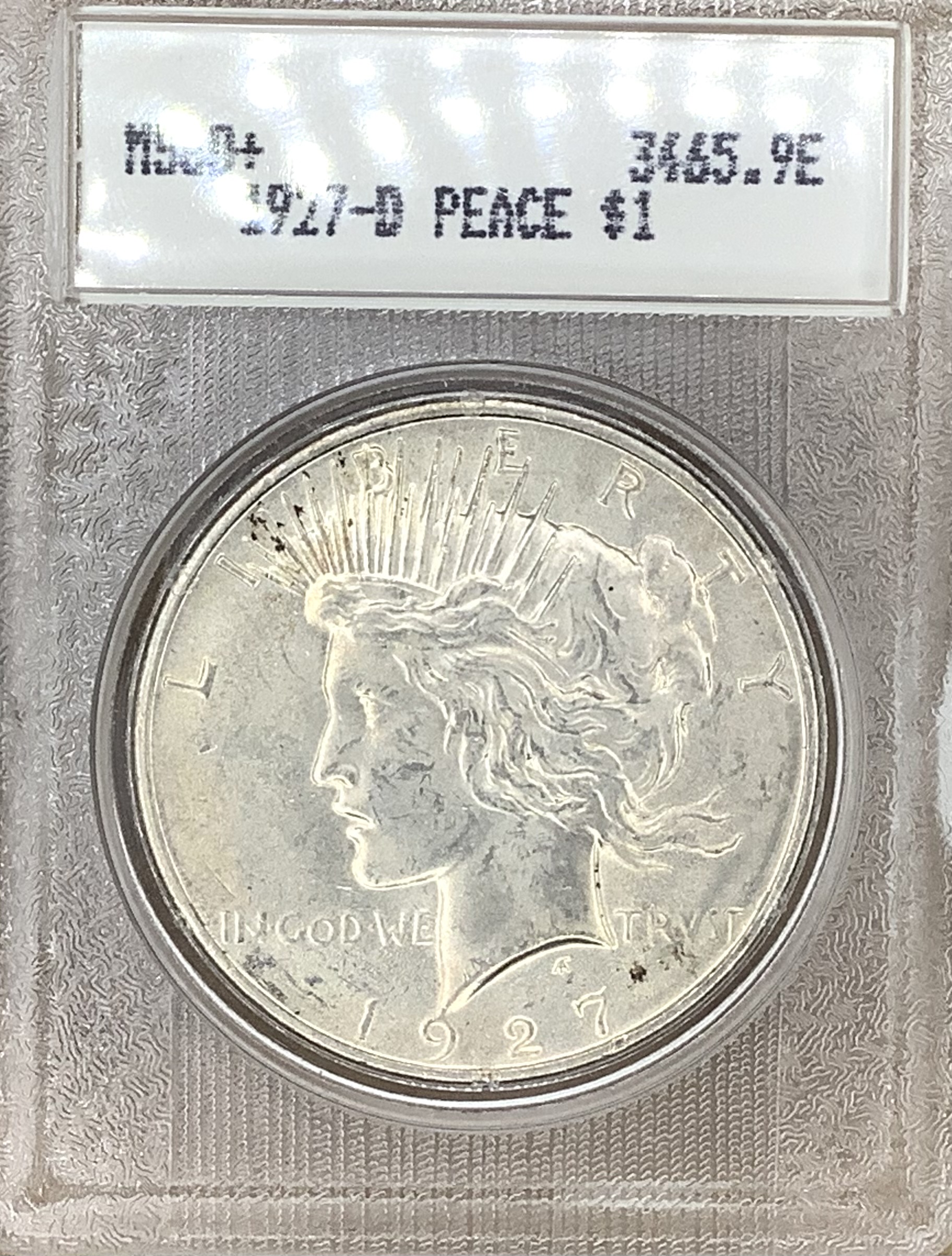 1927-D Peace Silver Dollar Lustrous Choice BU in Vintage Blanchard Slab Semi Key
