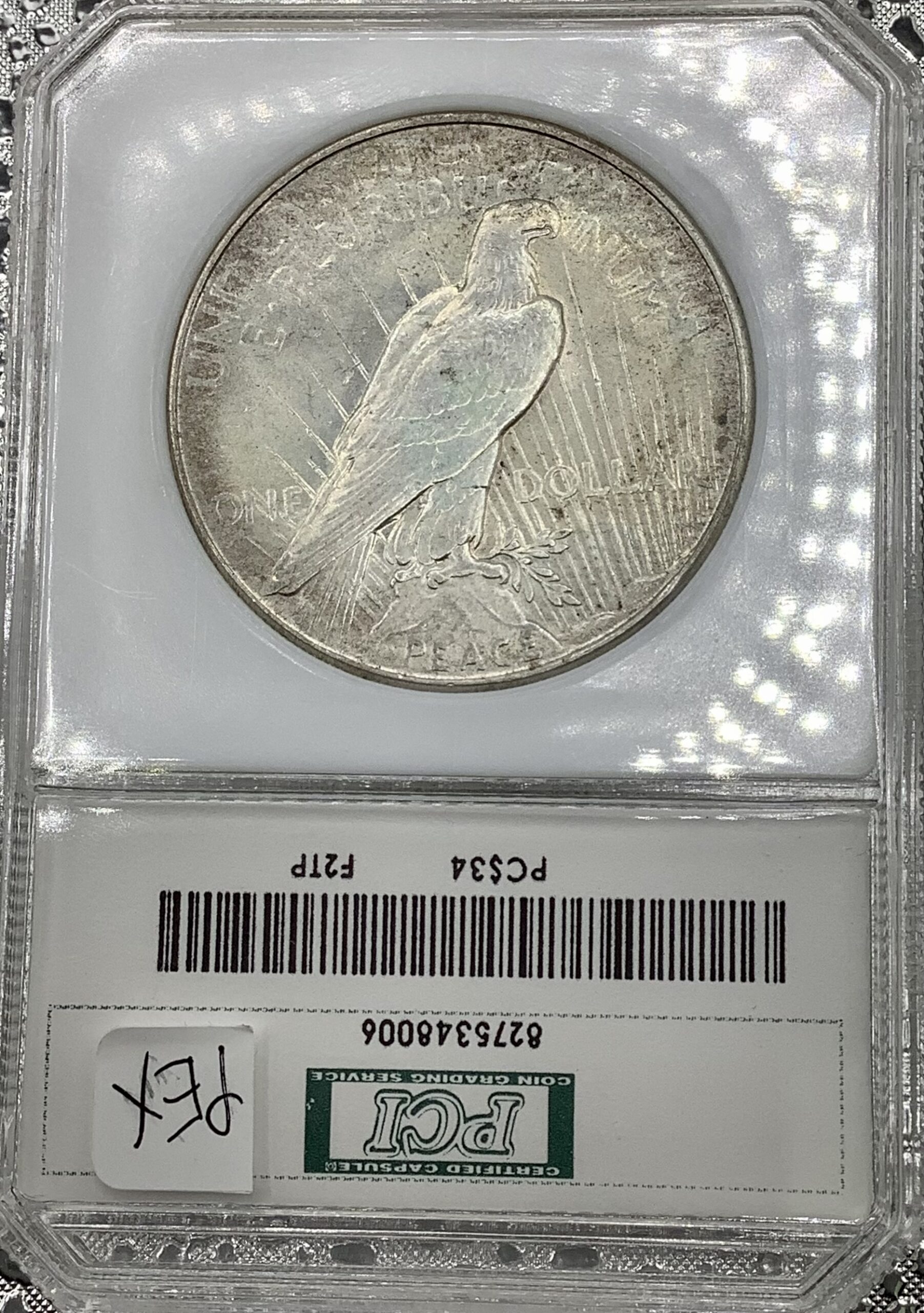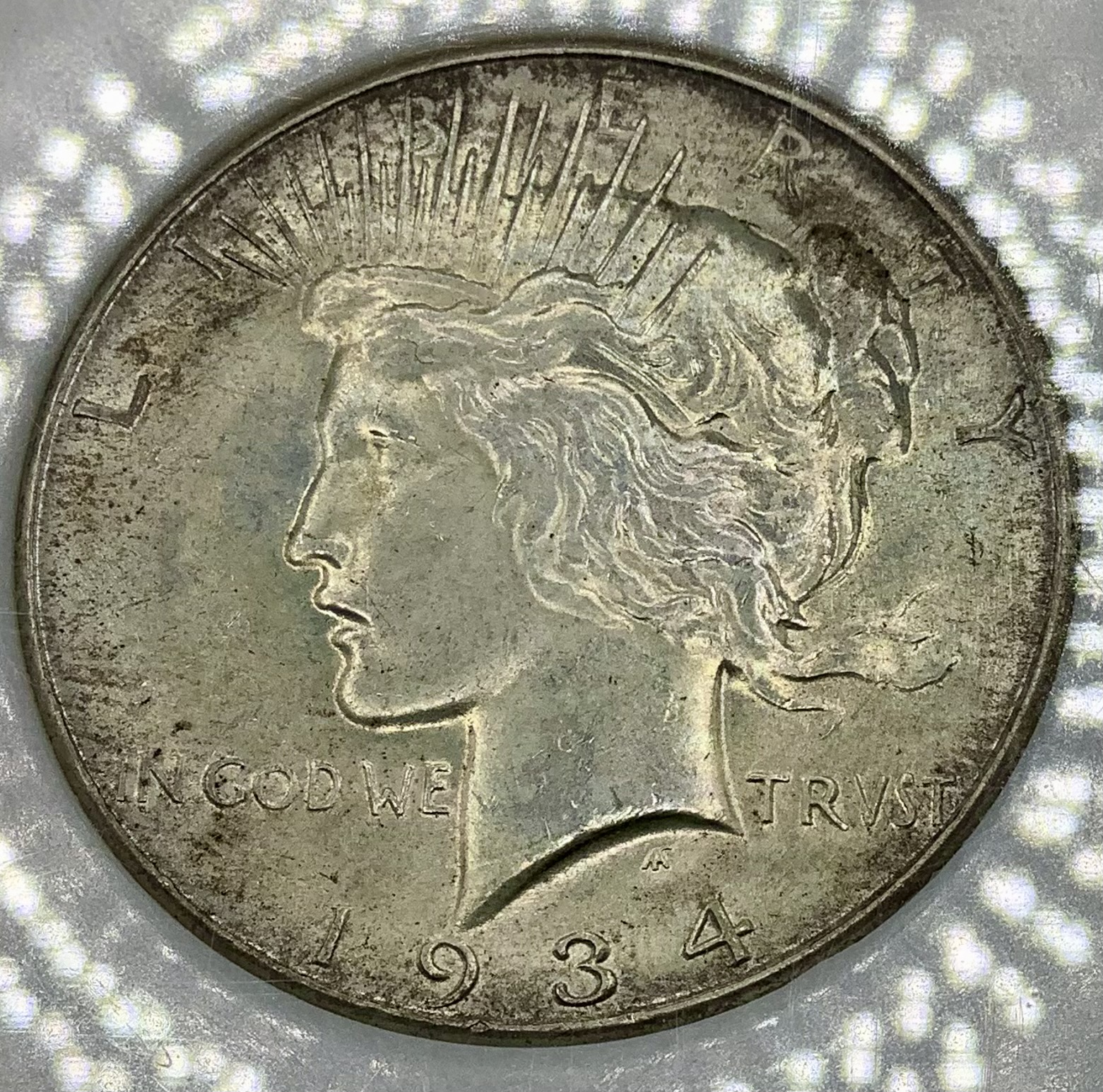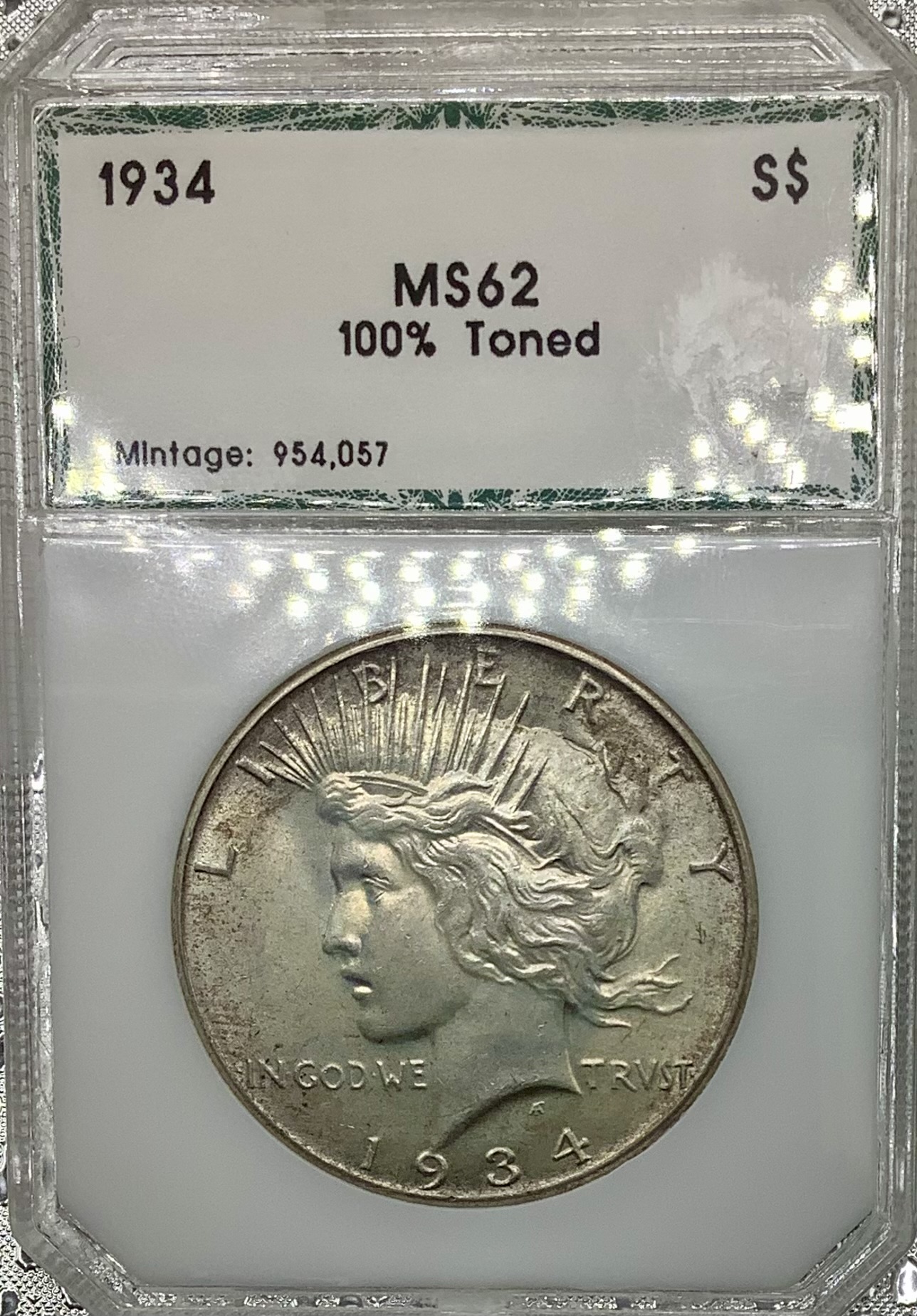 Product: 1934 Peace Silver Dollar Pastel Toned *COLOR* PCI Green Choice BU 90% Silver