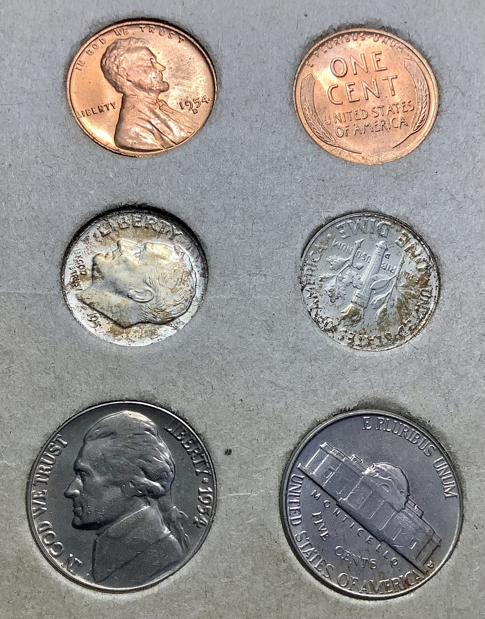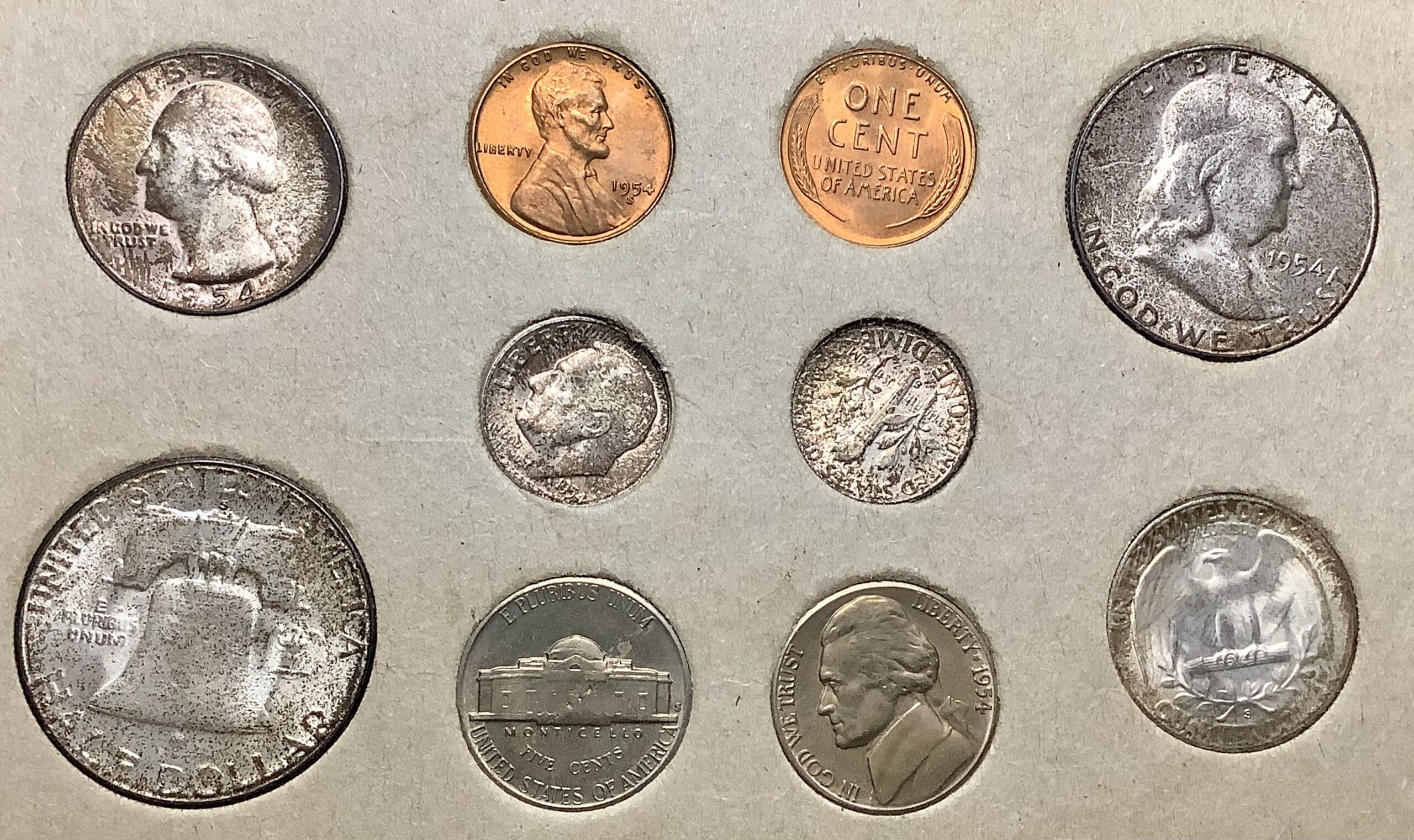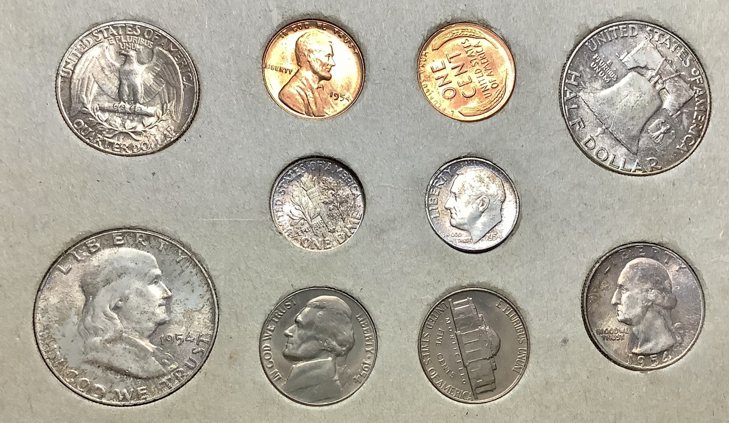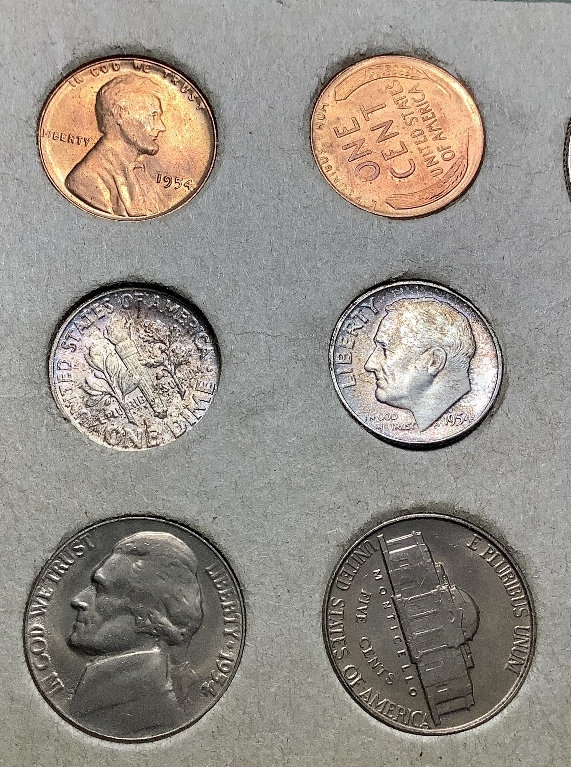 1954 US Double Carded Mint Set PDS OGP Beautiful Toning *COLOR* 2 of Each Coin
