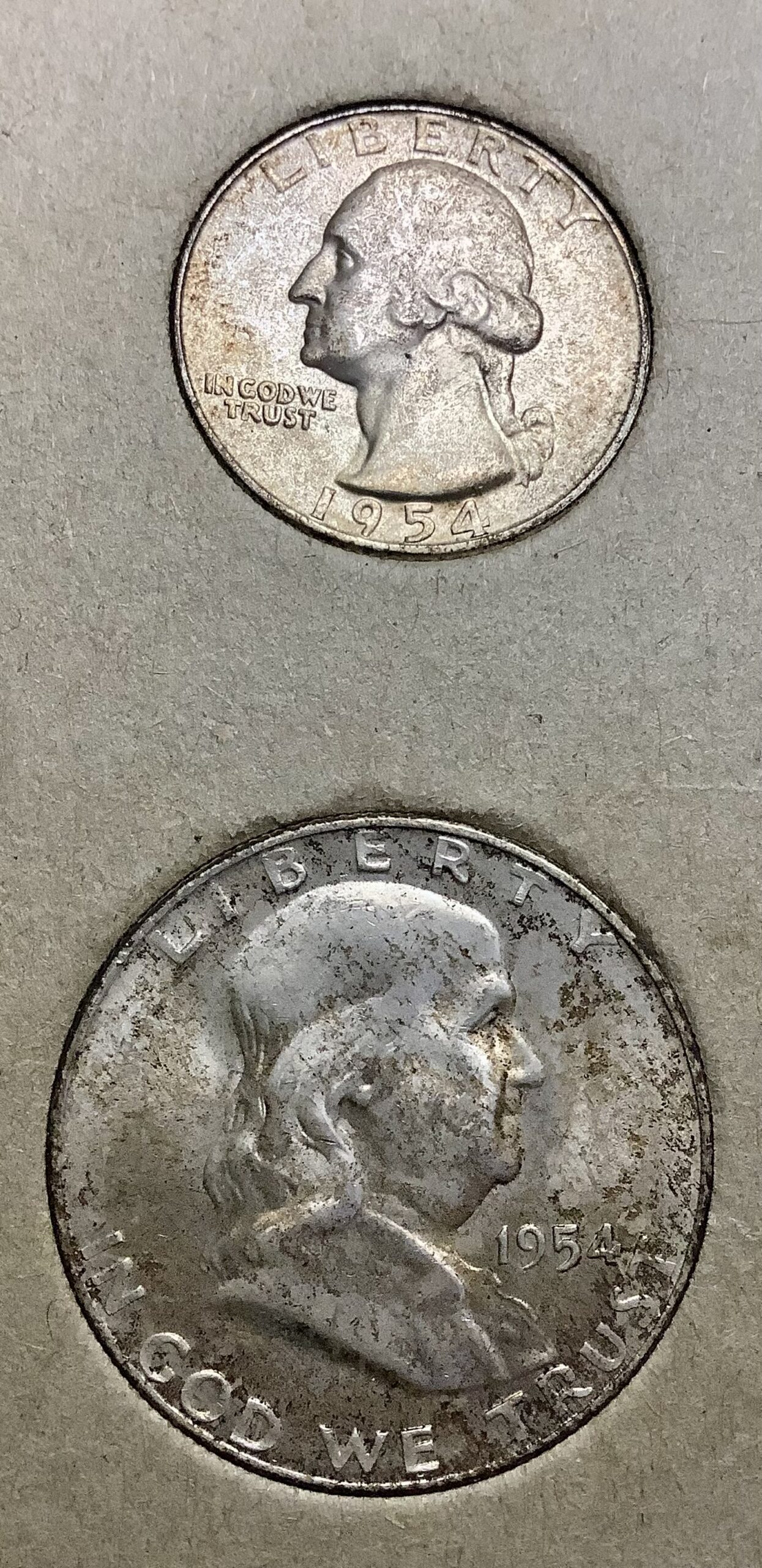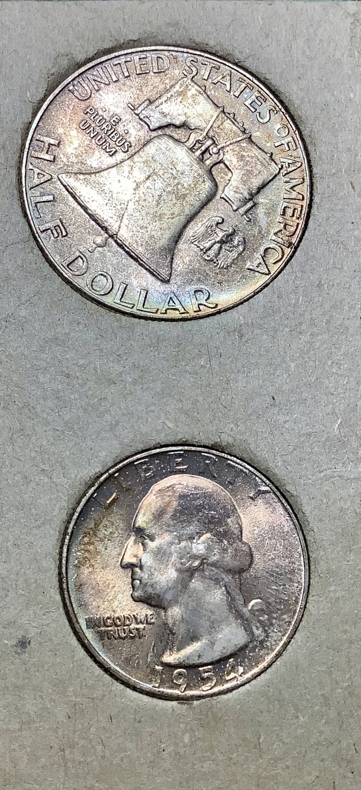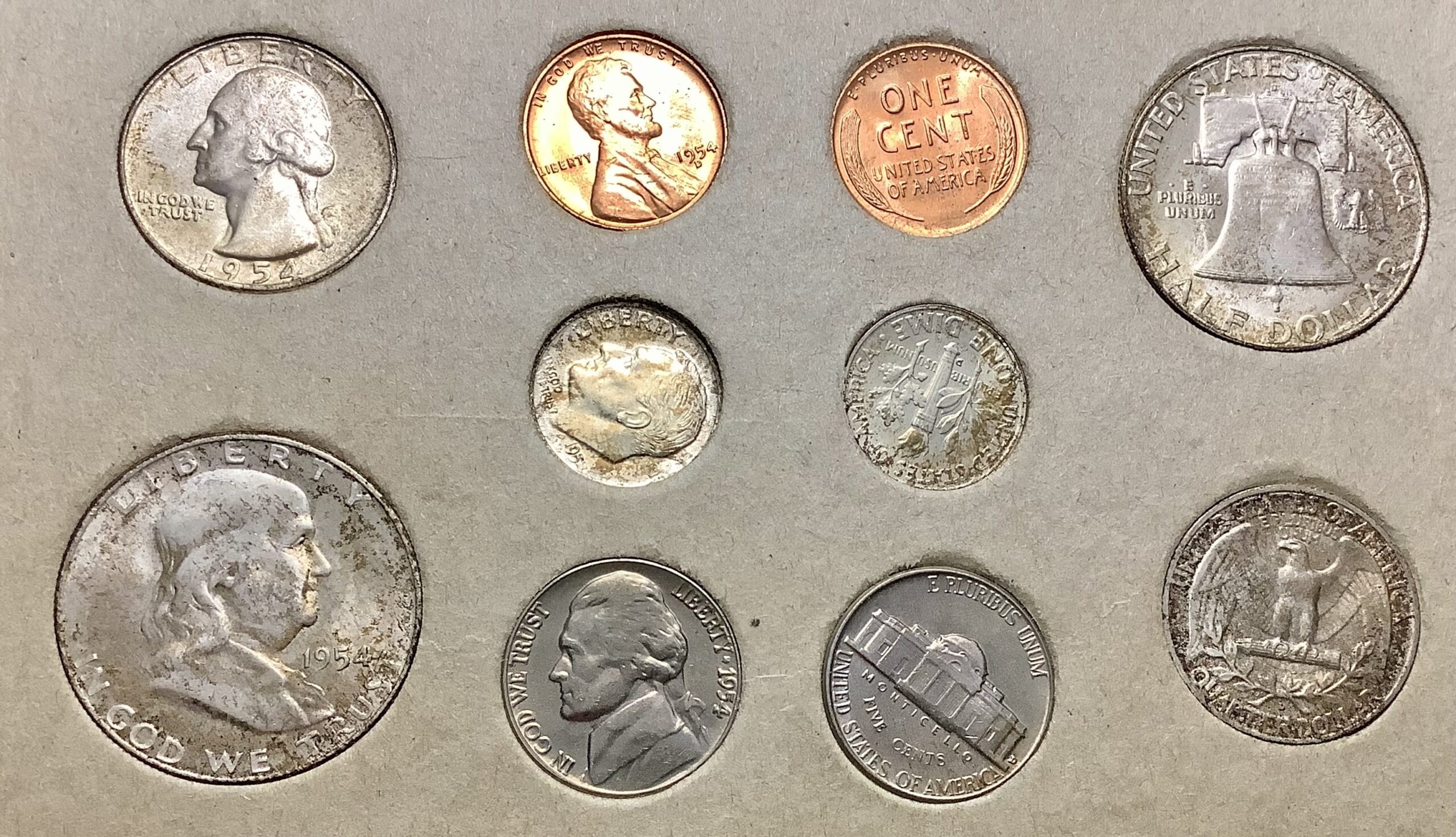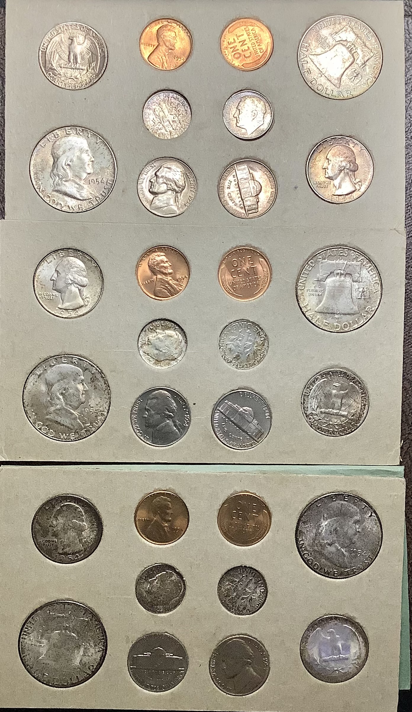 1954 US Double Carded Mint Set PDS OGP Beautiful Toning *COLOR* 2 of Each Coin