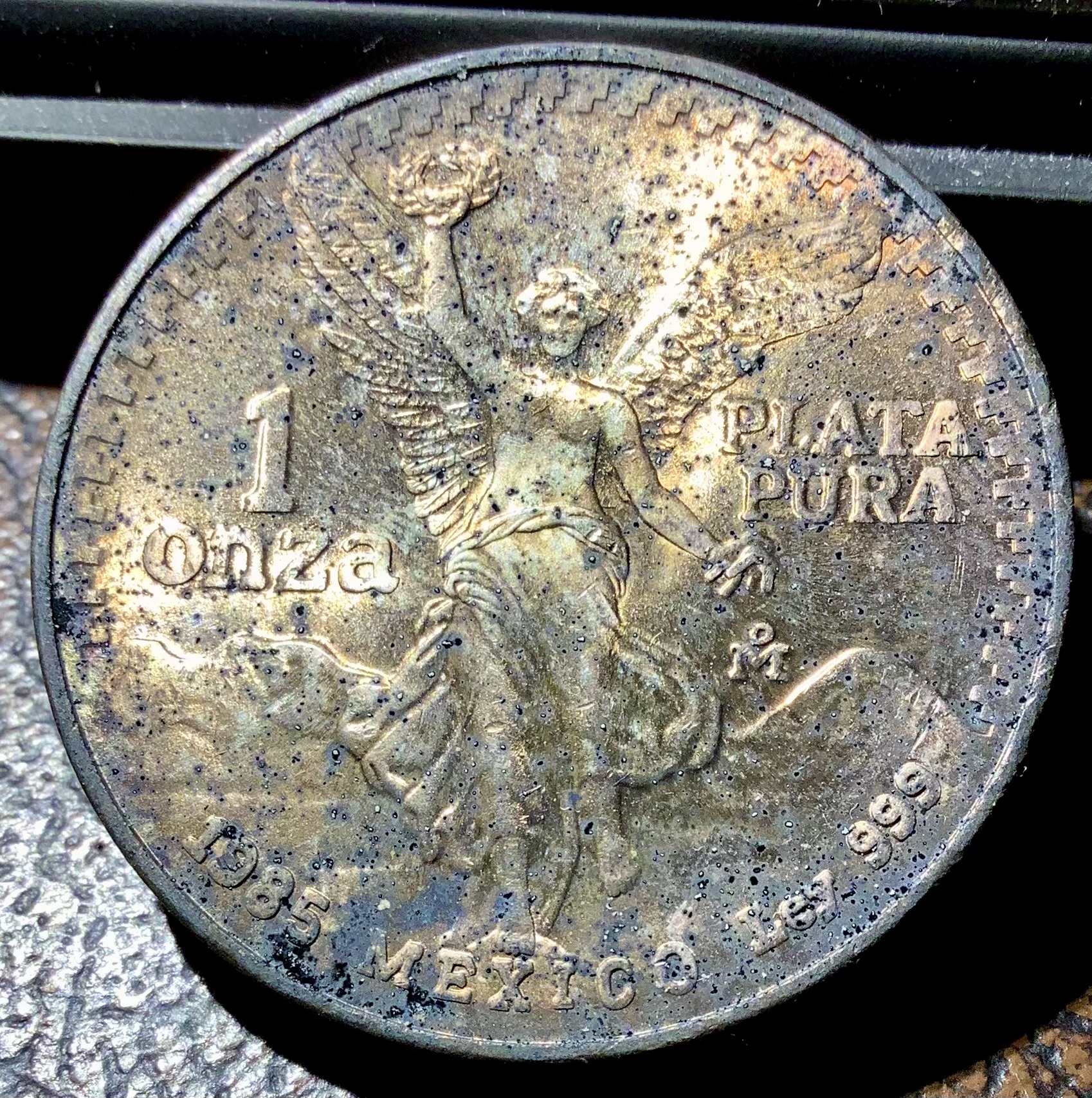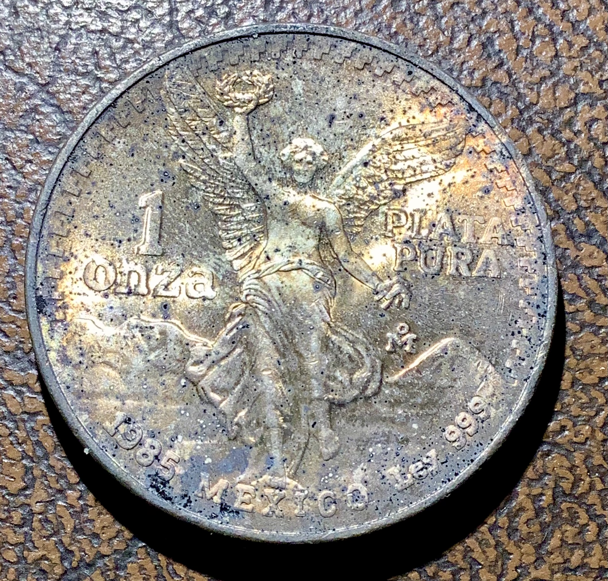 1985 Mexico Onza Libertad 1oz .999 Silver GREAT Toning From Banco Mexico OBW BU Sigma