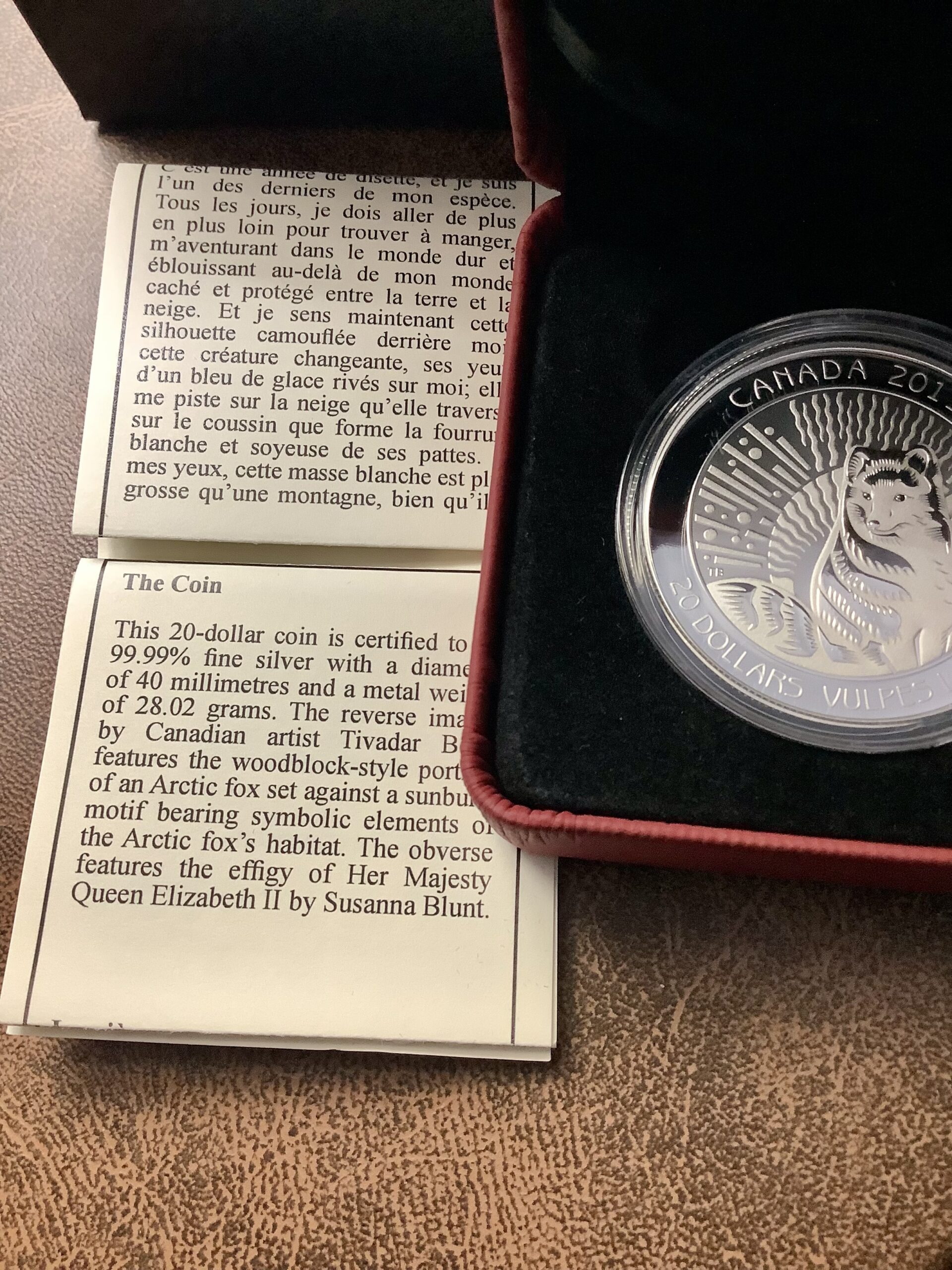 2013 .9999 Silver 28g Canada Arctic Fox OGP COA 925/8500 Minted
