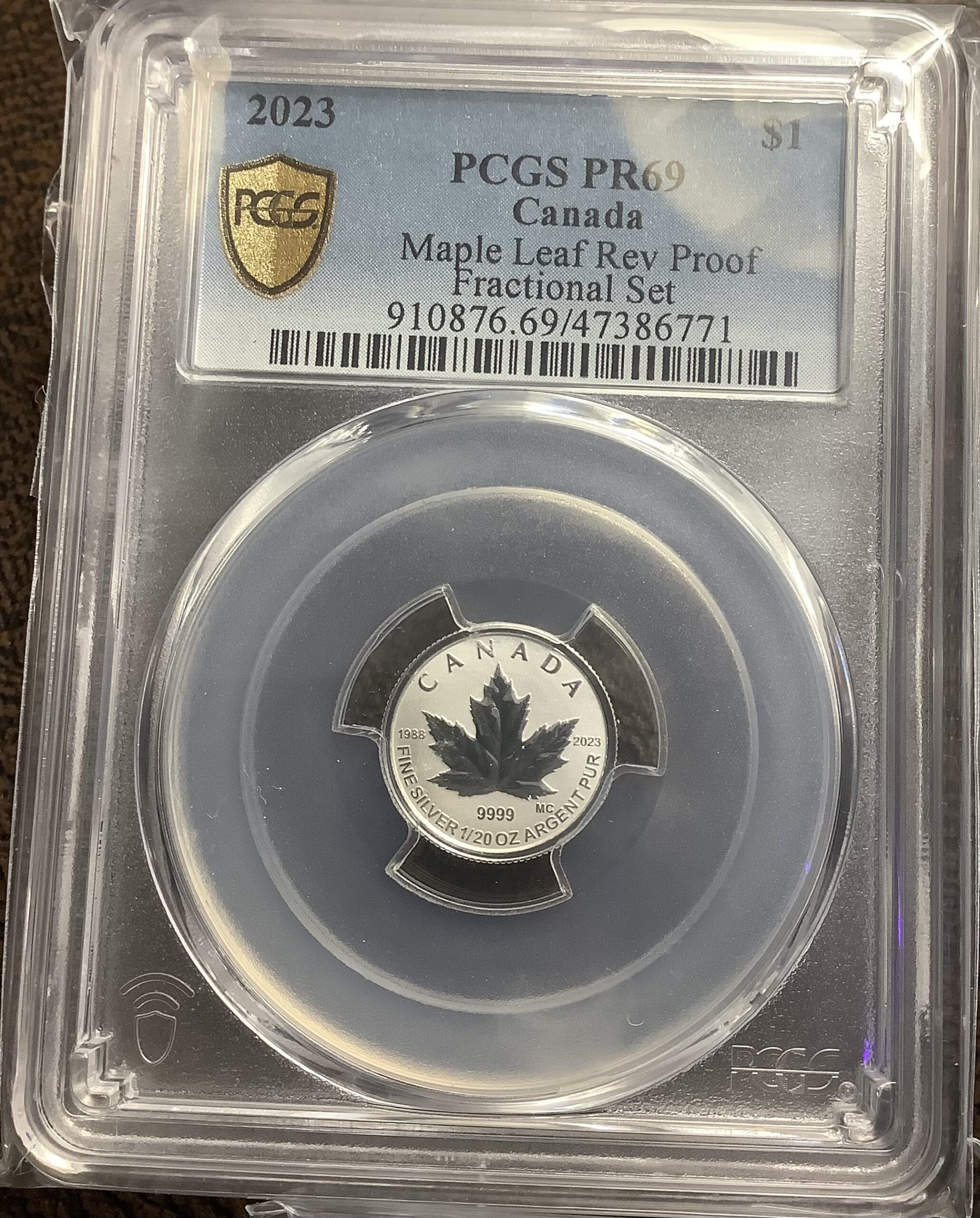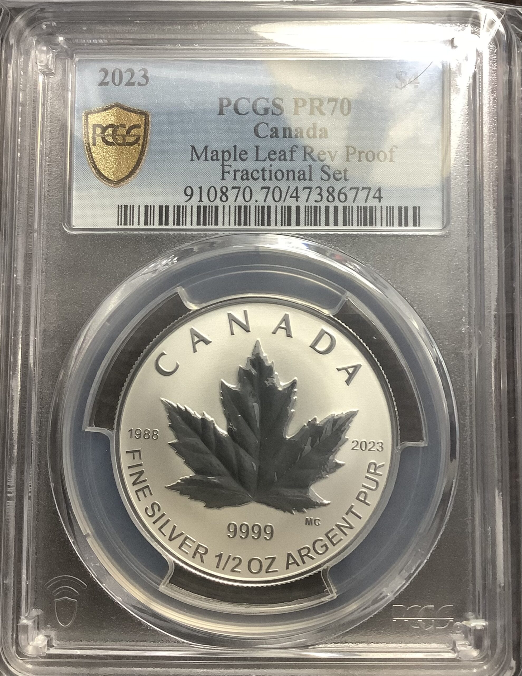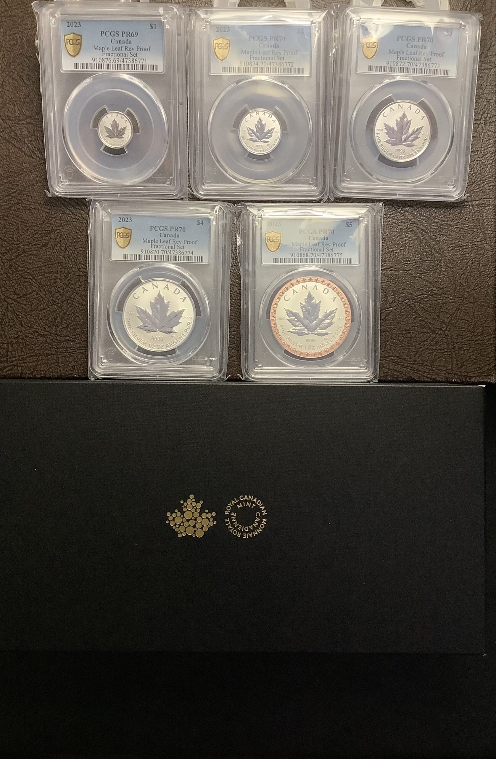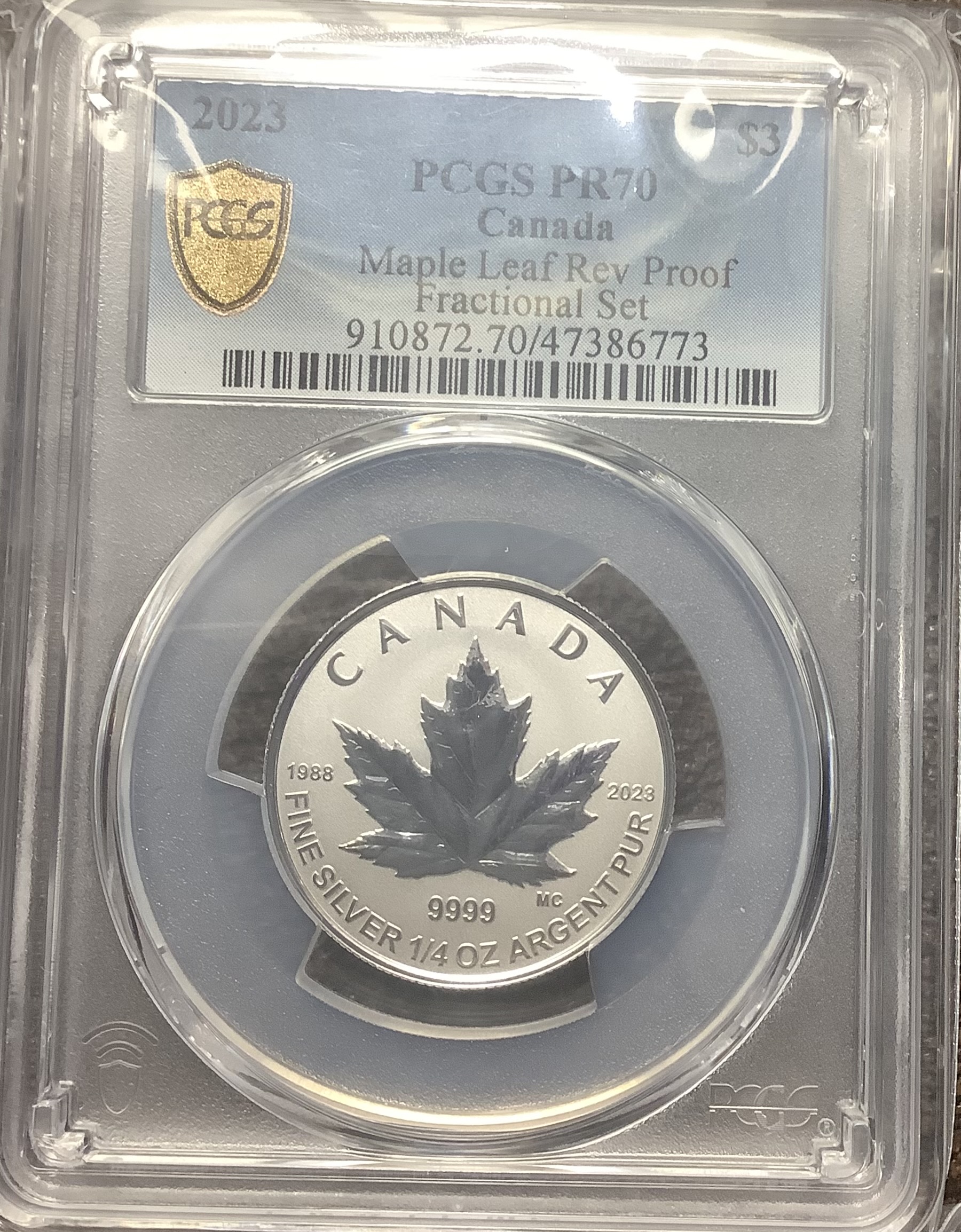Canada’s Royal Canadian Mint 35th anniversary of the beloved Canadian Maple Leaf Coin is commemorated by this 35th anniversary of The Maple Leaf Reverse Proof Fractional Set.