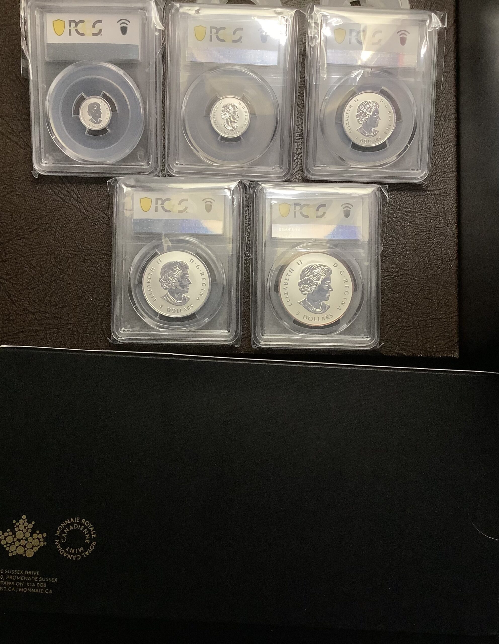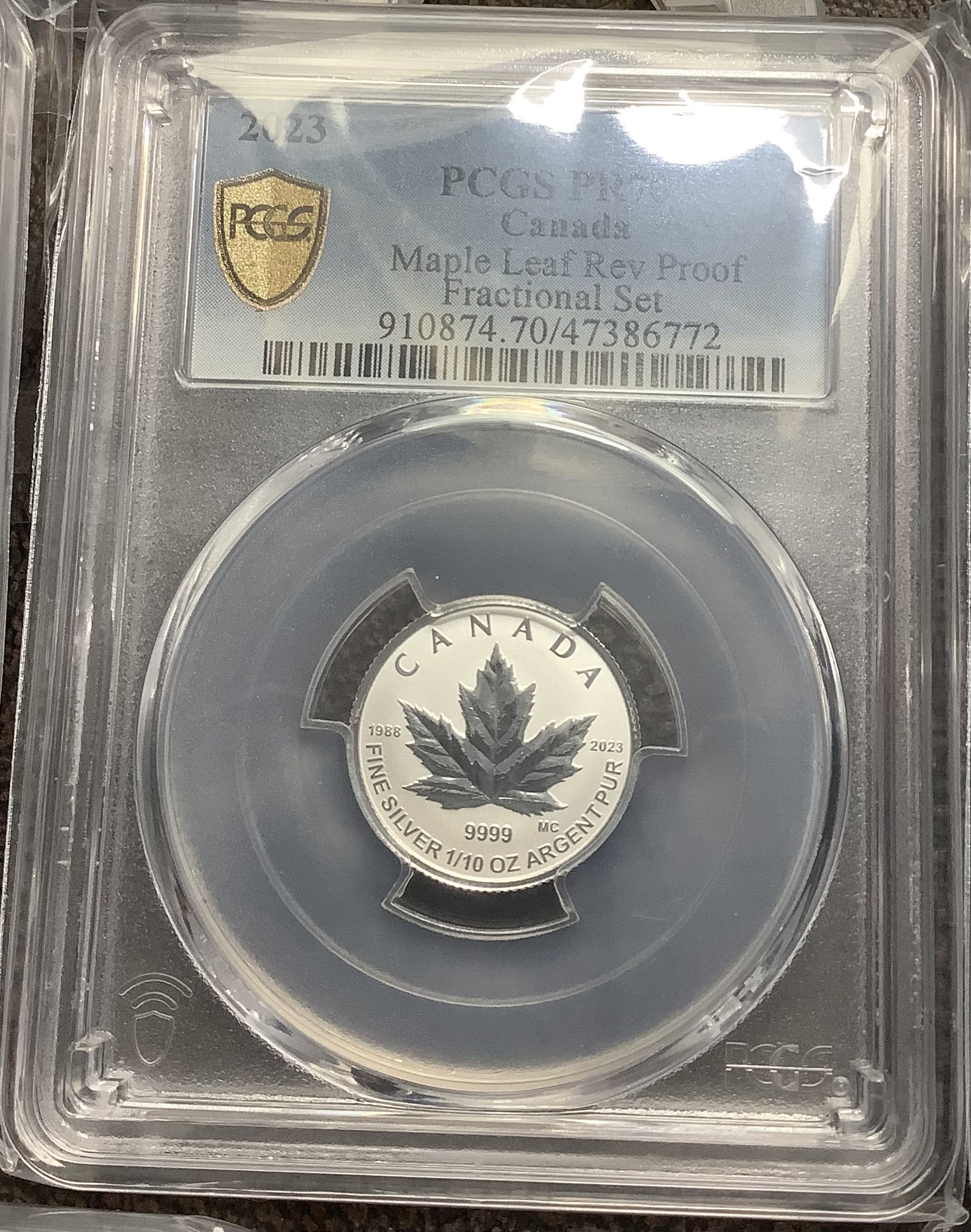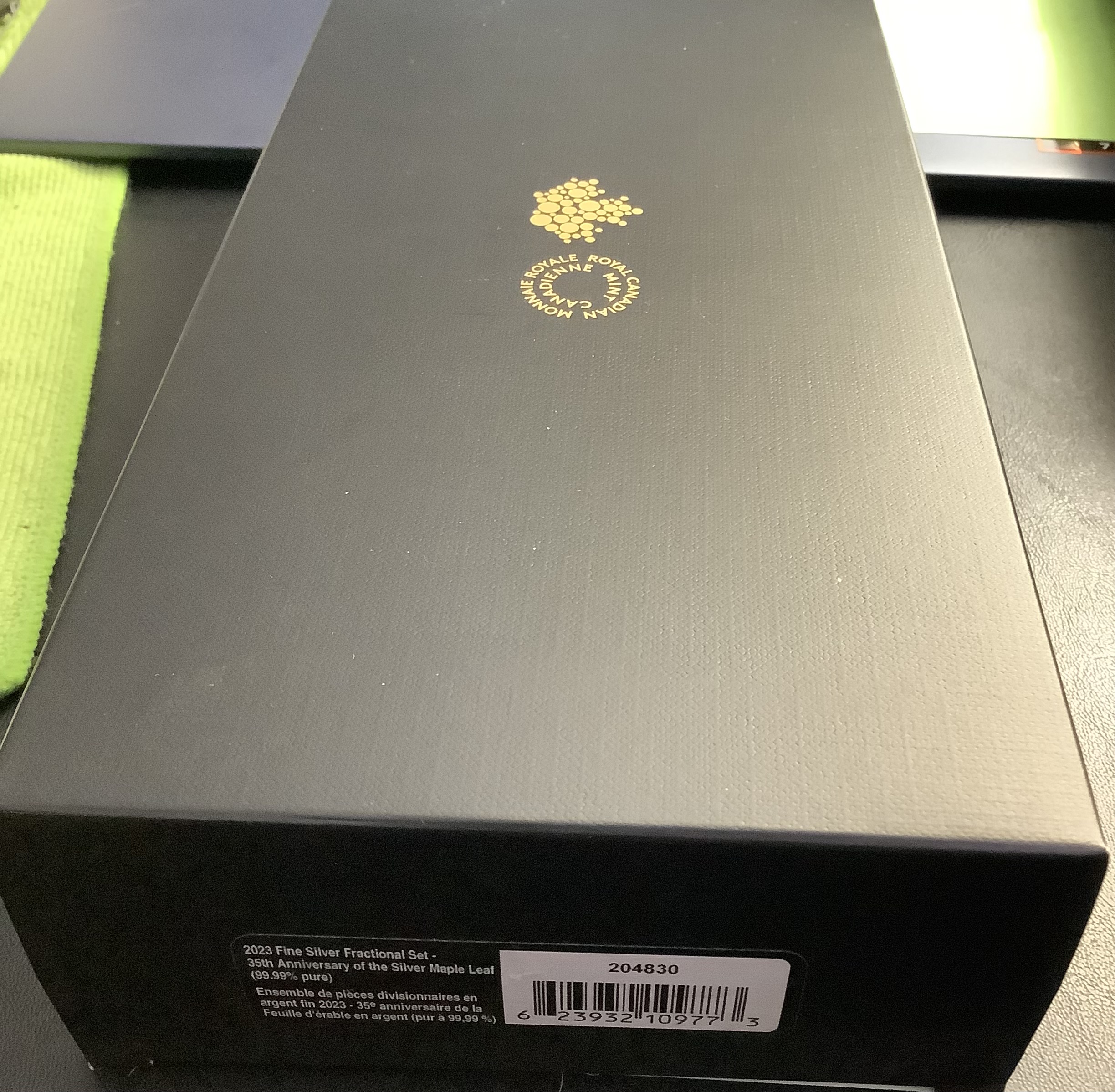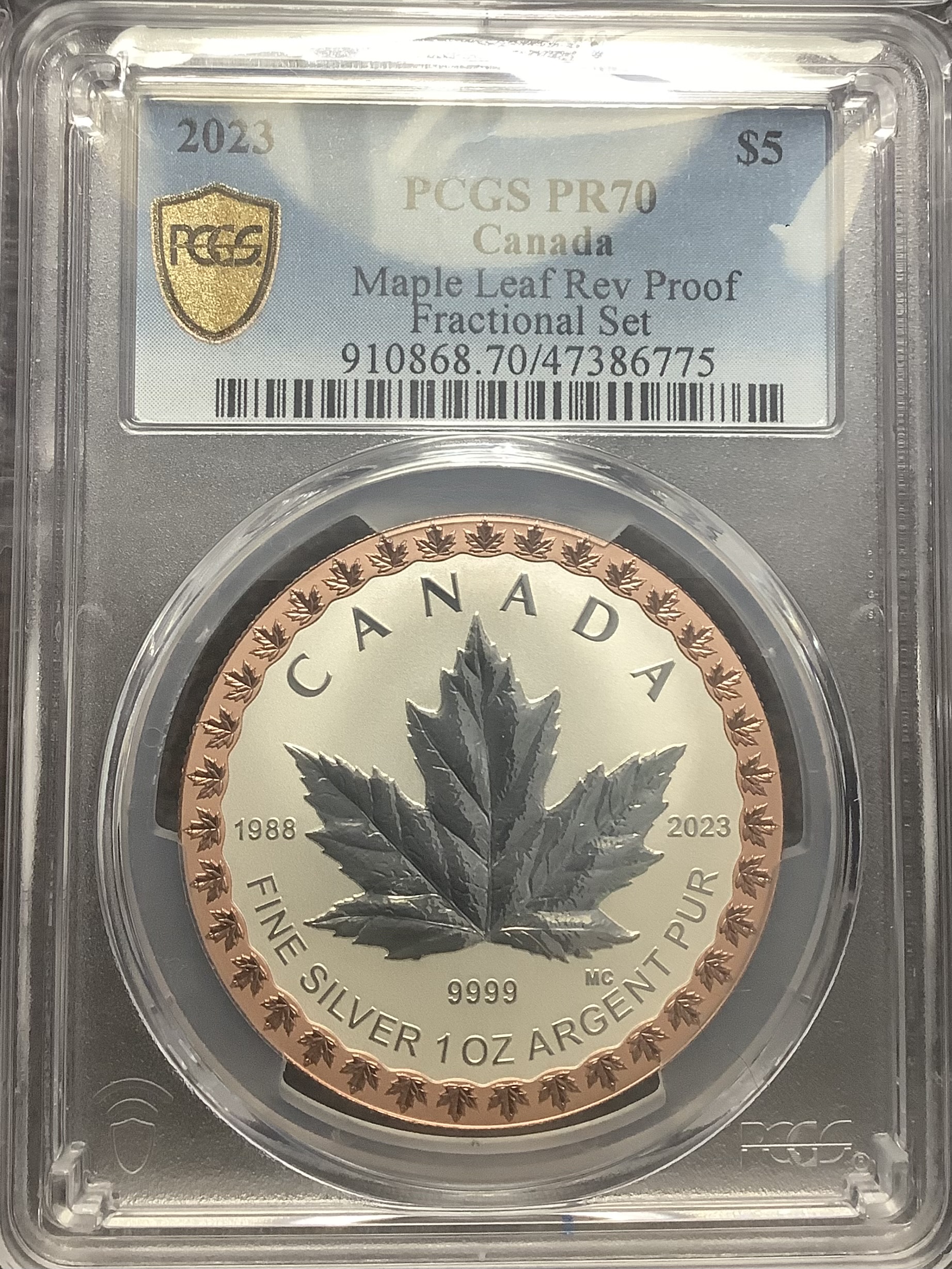 Canada’s Royal Canadian Mint 35th anniversary of the beloved Canadian Maple Leaf Coin is commemorated by this 35th anniversary of The Maple Leaf Reverse Proof Fractional Set.