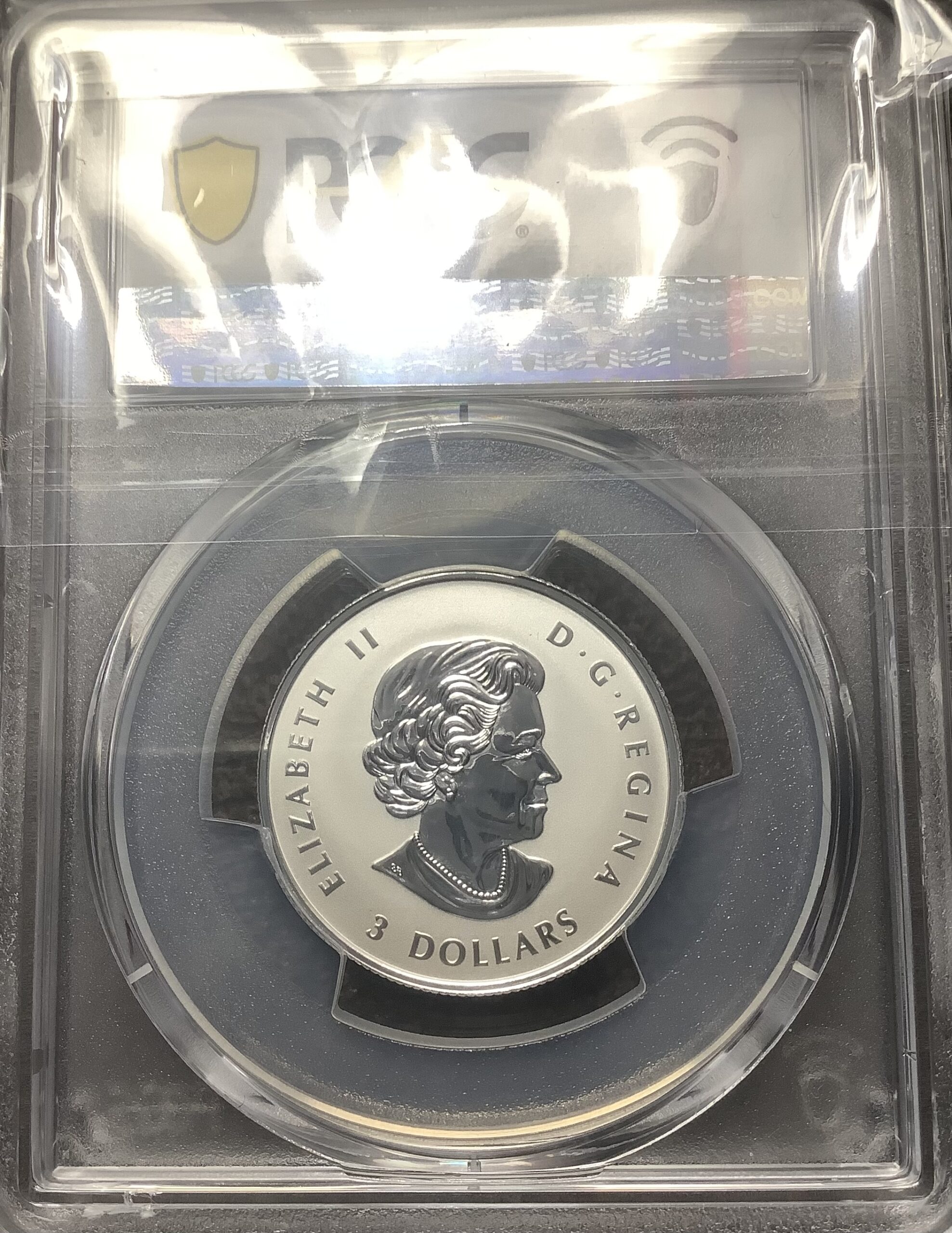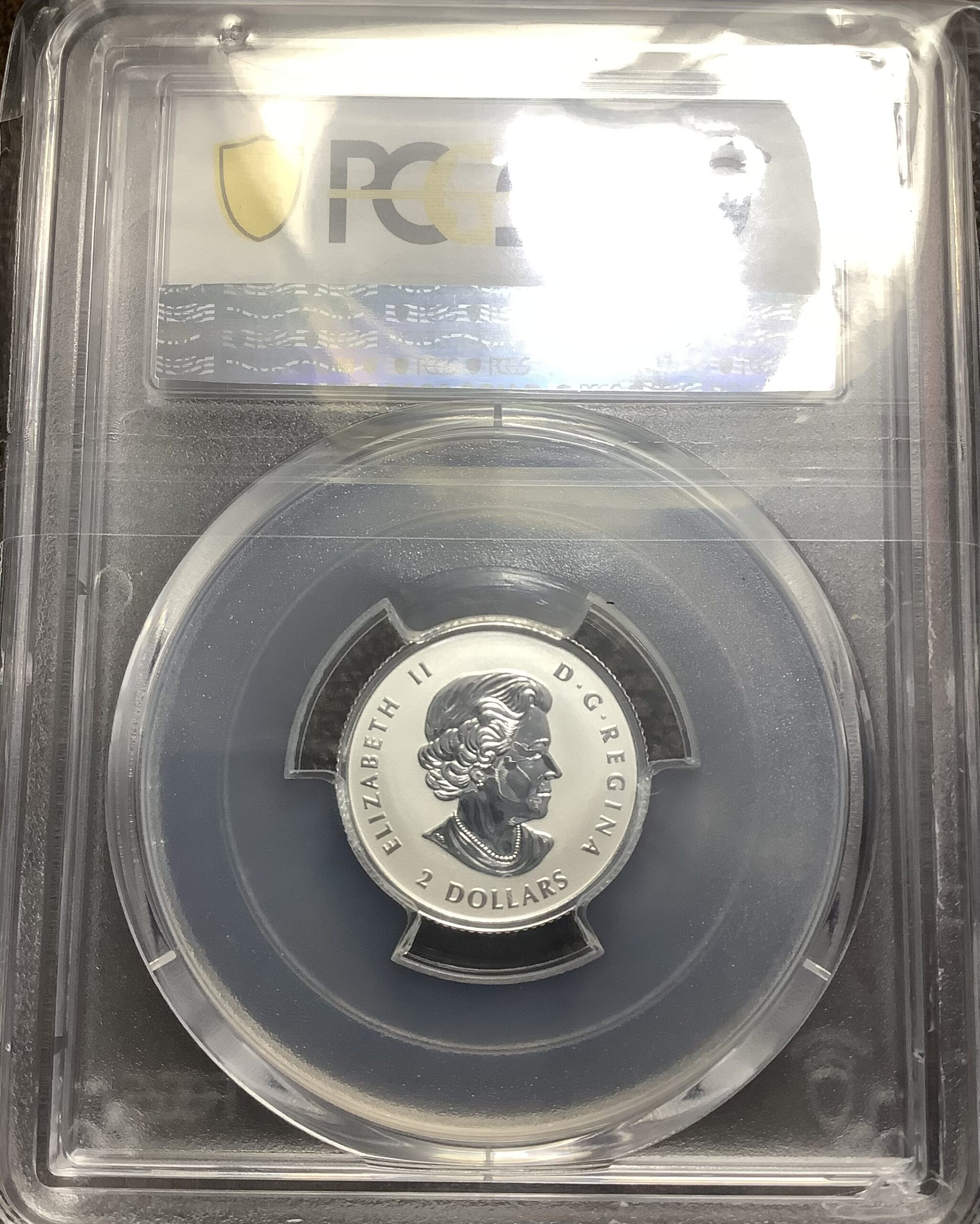 - Reverse: On all five coins, the reverse design by Marie Elaine Cusson features a classically styled portrait of a red maple (Acer rubrum) leaf, along with the double dates “1988 2023” commemorating the 35th anniversary of the first Silver Maple Leaf (SML) bullion coin. On the 1 oz coin, rose Gold plating highlights the engraved rim, which consists of a repeating pattern of Acer rubrum leaves. Each reverse includes the words “CANADA,” the coin’s purity and weight, and the year “2023.”