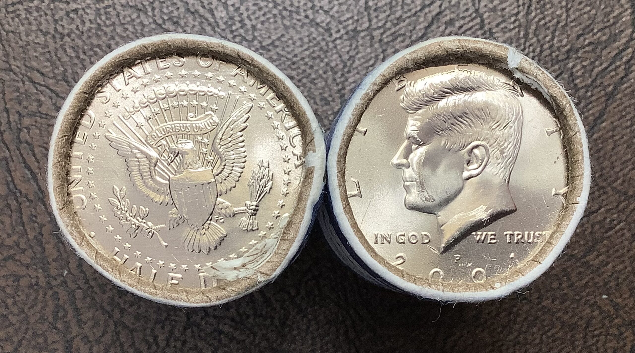 These are clad Half Dollars (no silver), wrapped tight in their original US Mint issued bank wrapped rolls