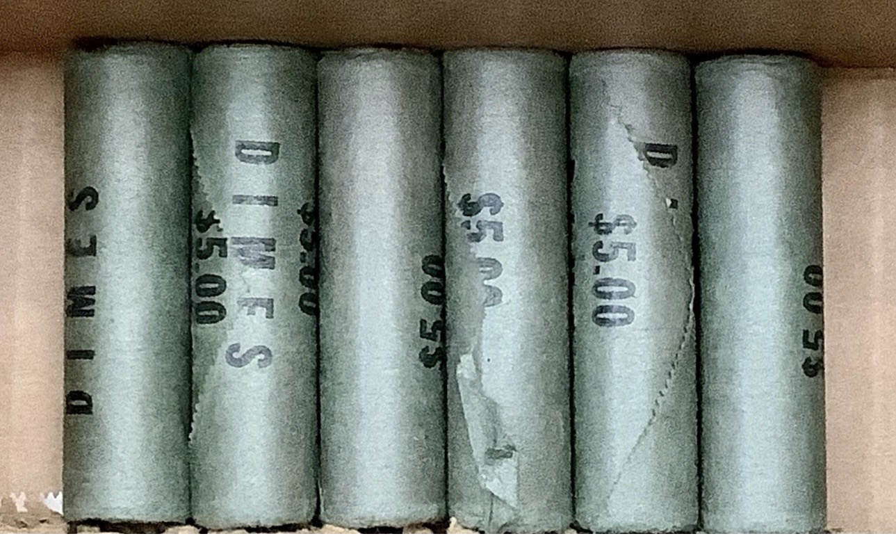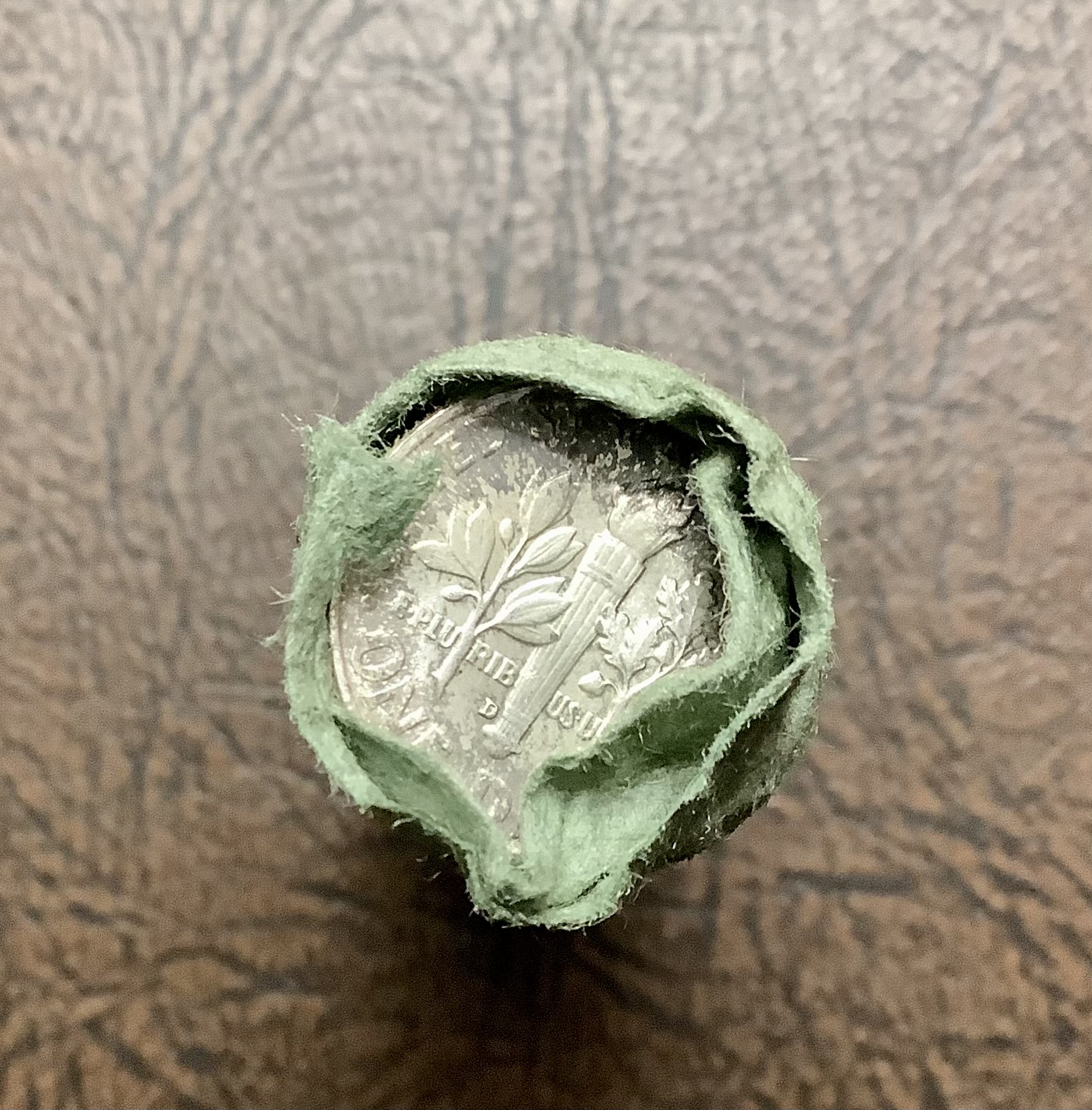 Opened OBW Original Shotgun Bank Wrapped BU Roll of 1964-D Denver Uncirculated Roosevelt Dimes.