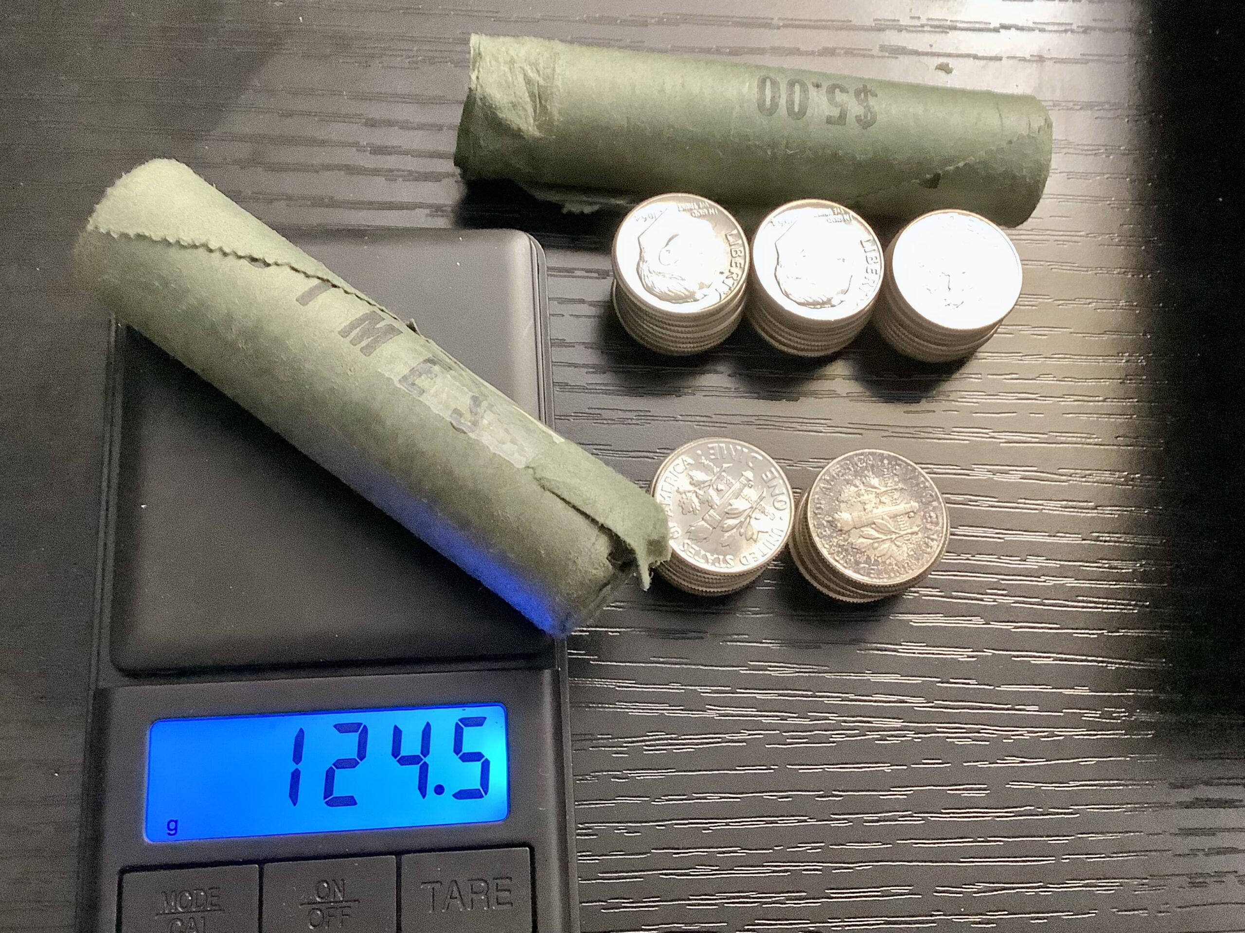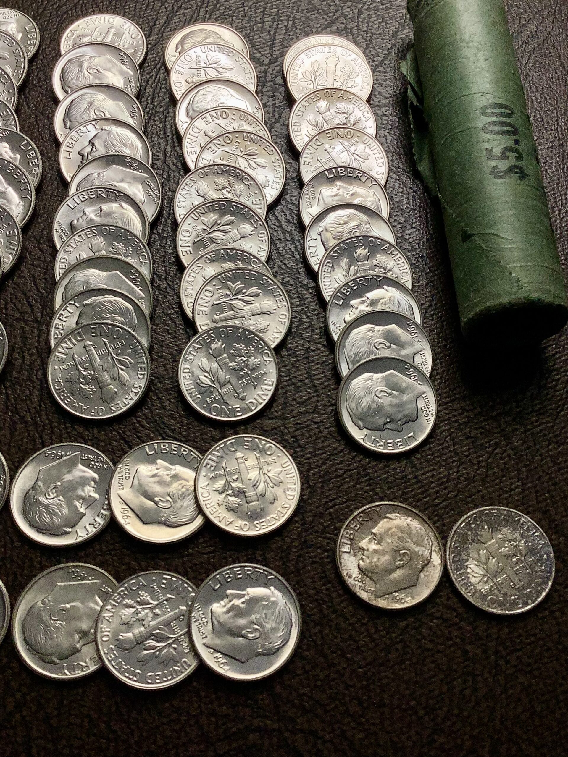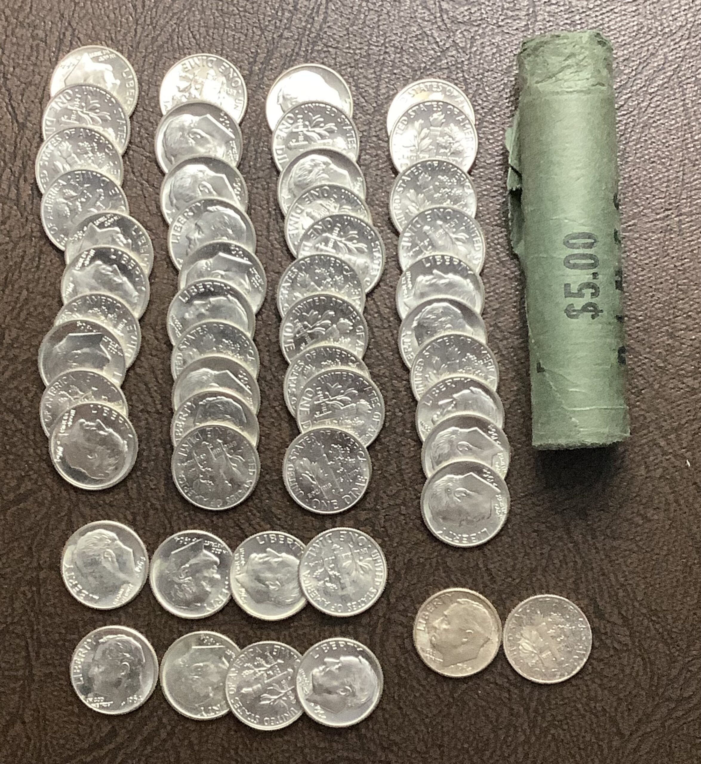 I opened the roll to show to the buyer they can confirm there are 50 coins, and all 50 are 90% Silver beautiful lustrous 1964-D BU Roosevelt Dimes with two lovely toned end of roll coins.
