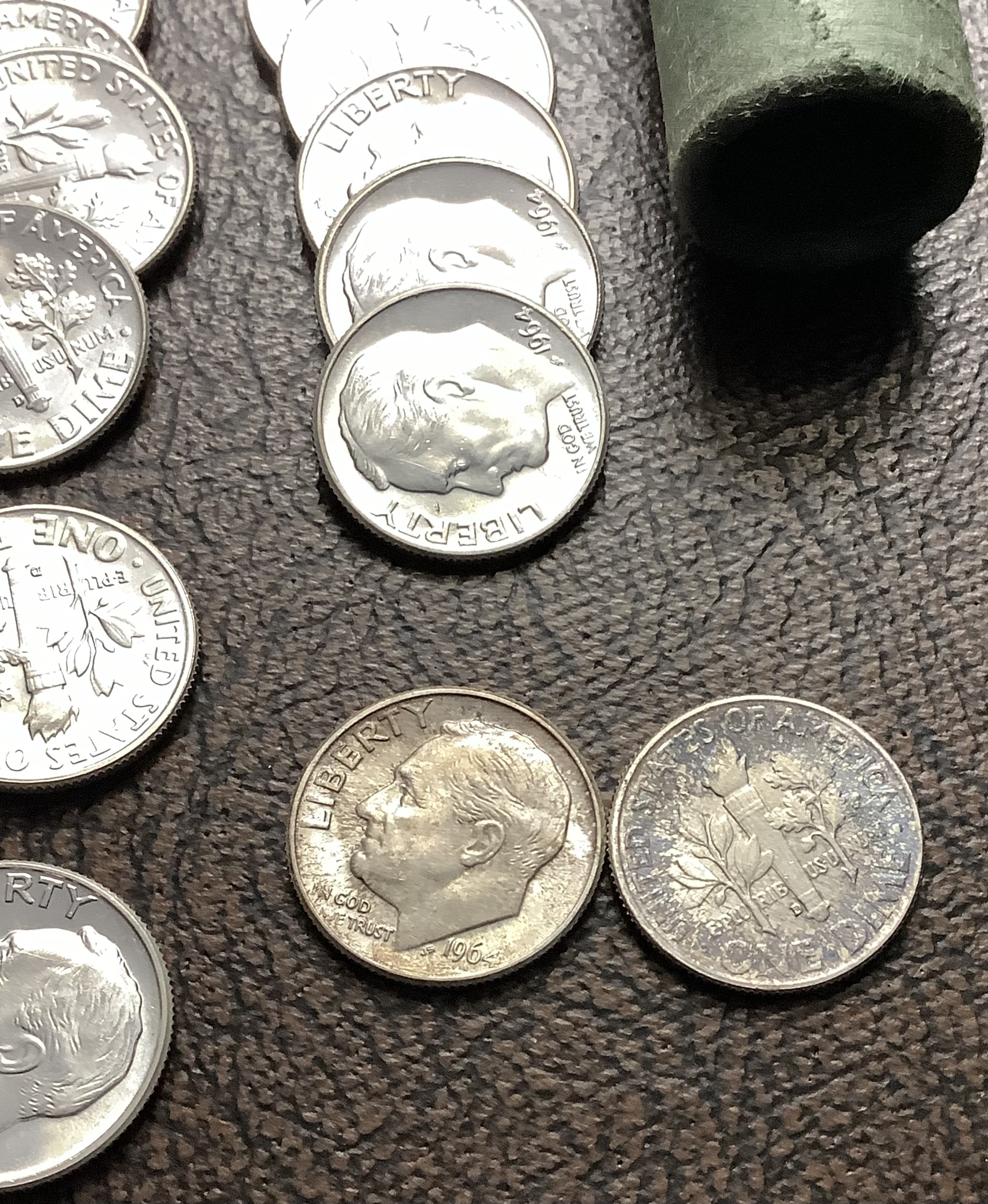 Roll comes from a small hoard of 1964-D BU Roosevelt Dime rolls all in the same group (last picture)