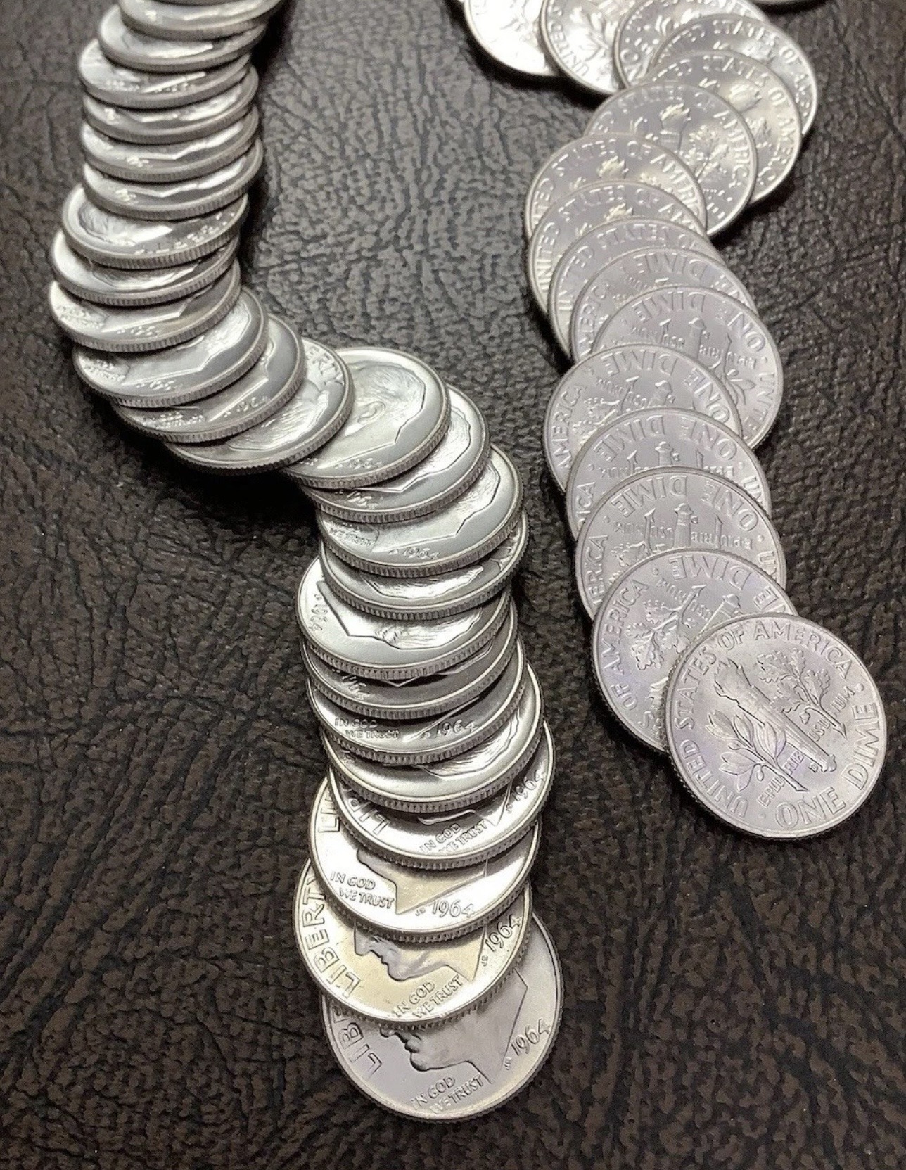 Original BU Roll 1964-D 90% Silver Roosevelt Dimes – 50 BU Coins