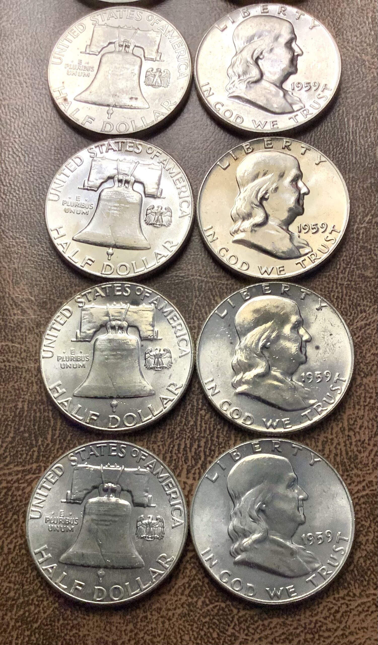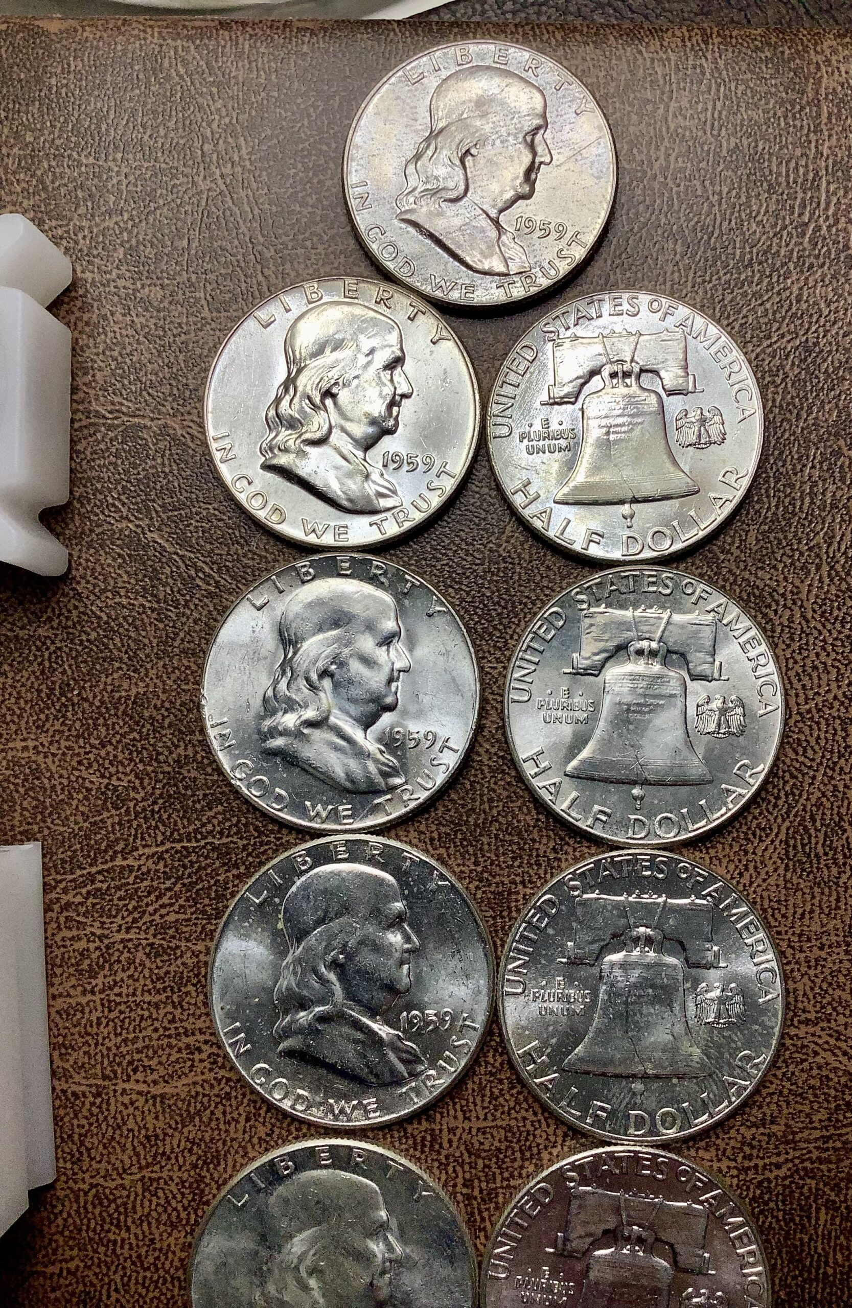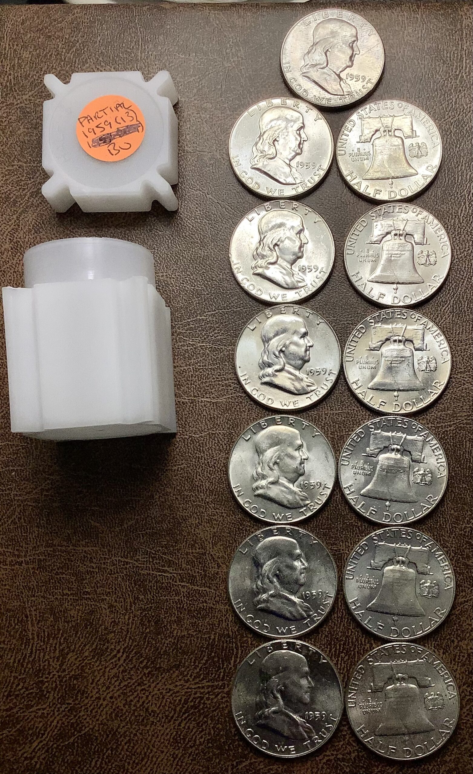 Partial Choice BU Roll of 13 90% Silver 1959 Franklin Half Dollars.